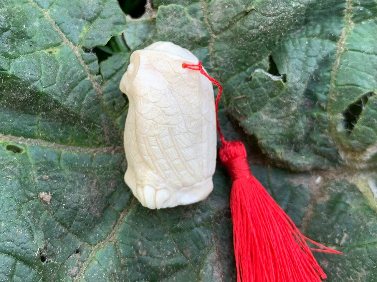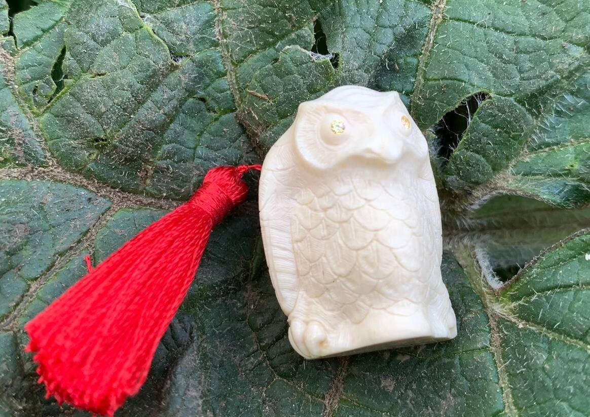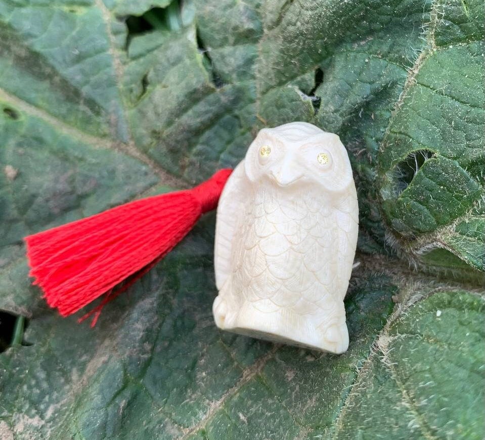 Unique Bone Figurine Owl, Handmade Netsuke Owl, Hand Carved Statues, "Owl", Wooden Figurine, Bone Figurine, Okimono Owl
