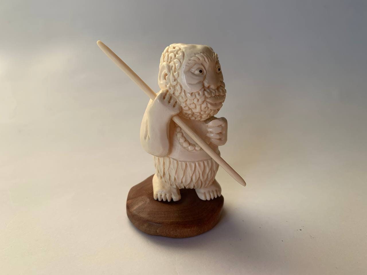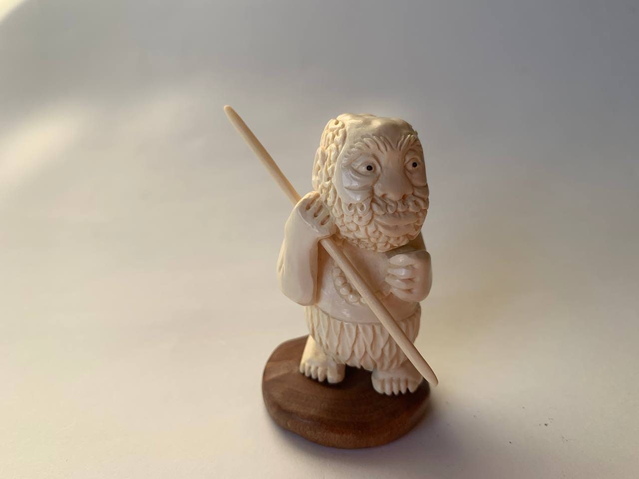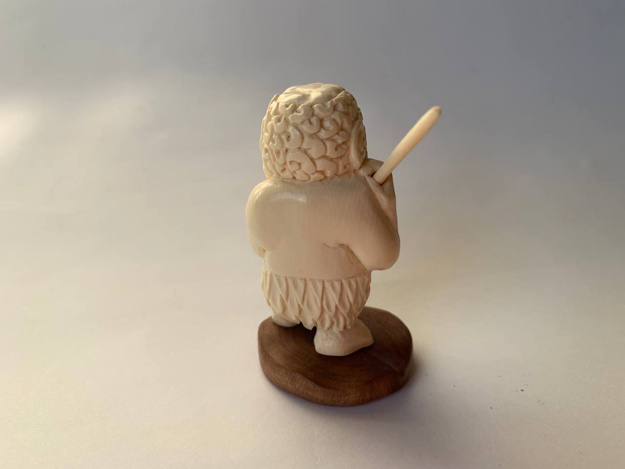 Unique Figurine, Handmade Netsuke, Hand Carved Statues, "Aborigine", Bone Netsuke, Okimono, Statues Aboriginal