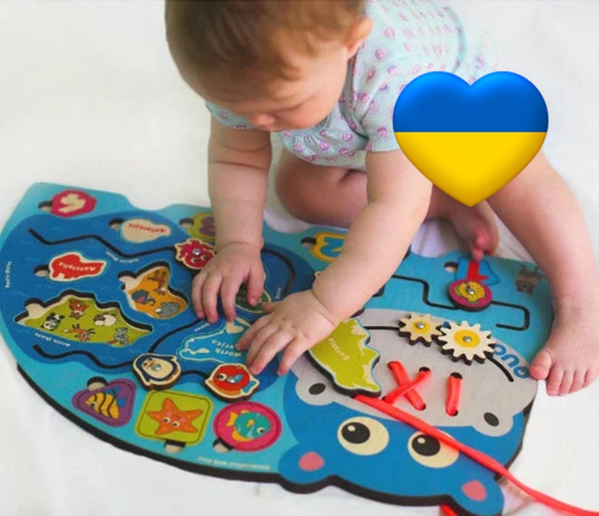 Busy board Wooden hippo toddler toy Baby Christmas gift Educational toy Sensory board baby activities Montessori toy Newborn first gift