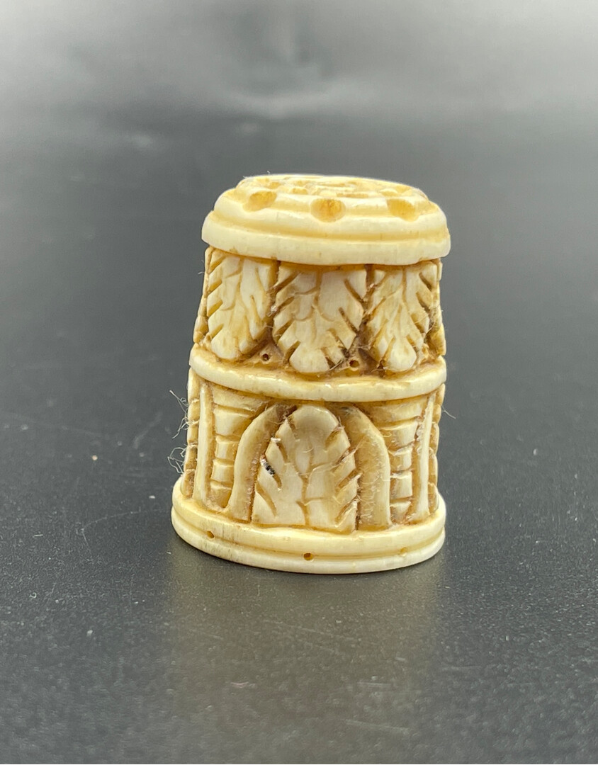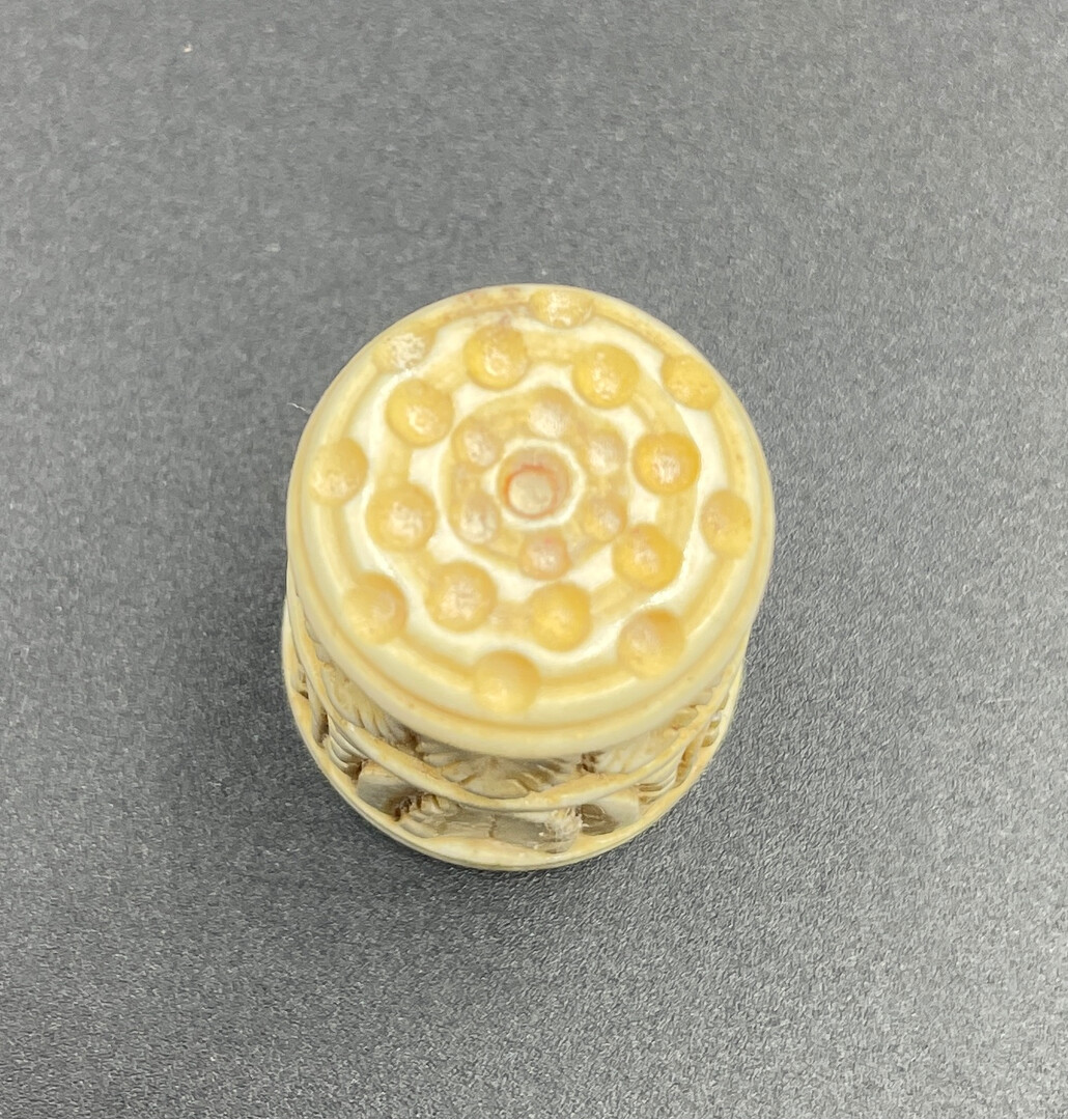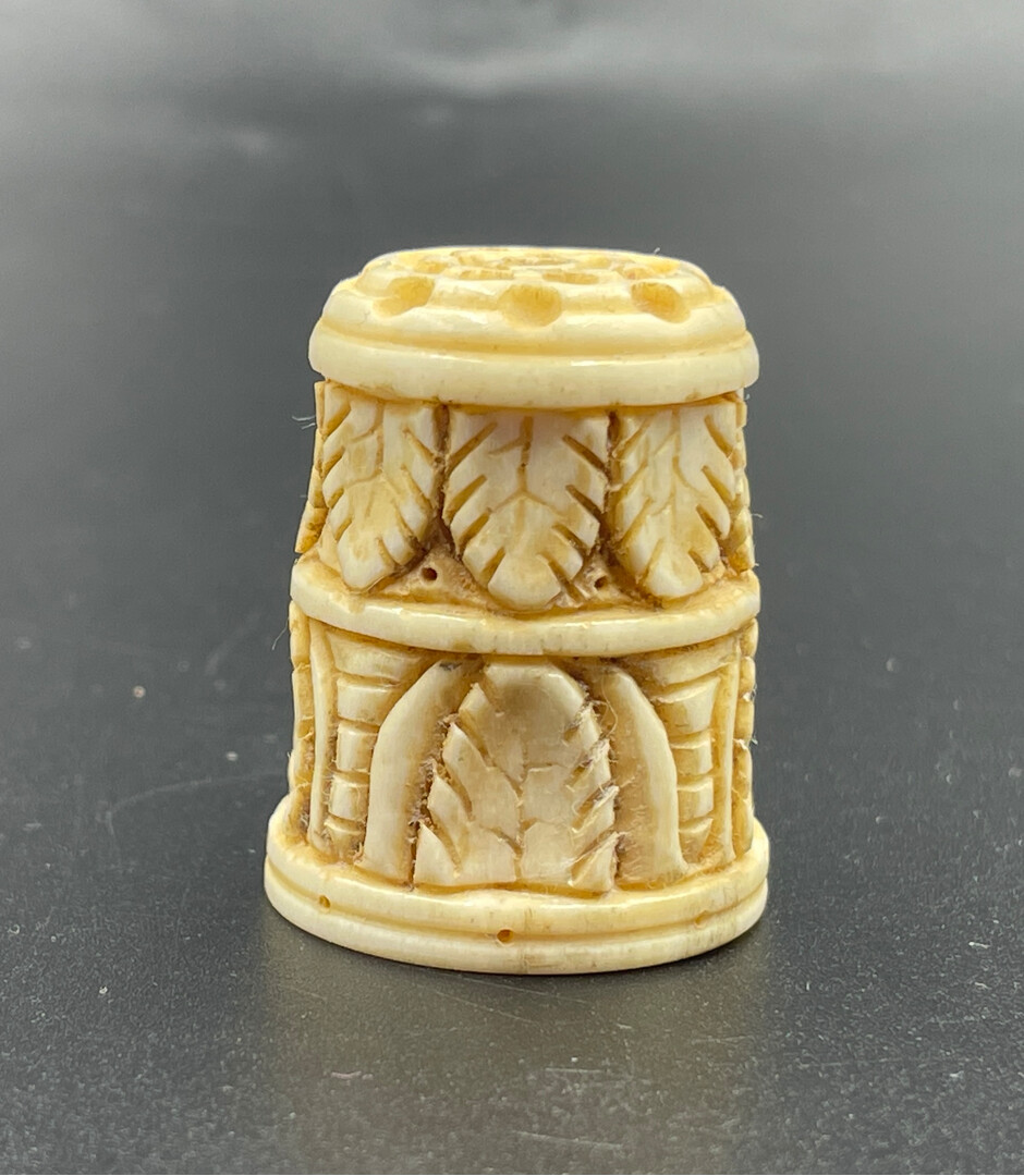 Handcarved Finger Thimble with Floral Leaf Design – Unique Miniature, Collectible Figurine