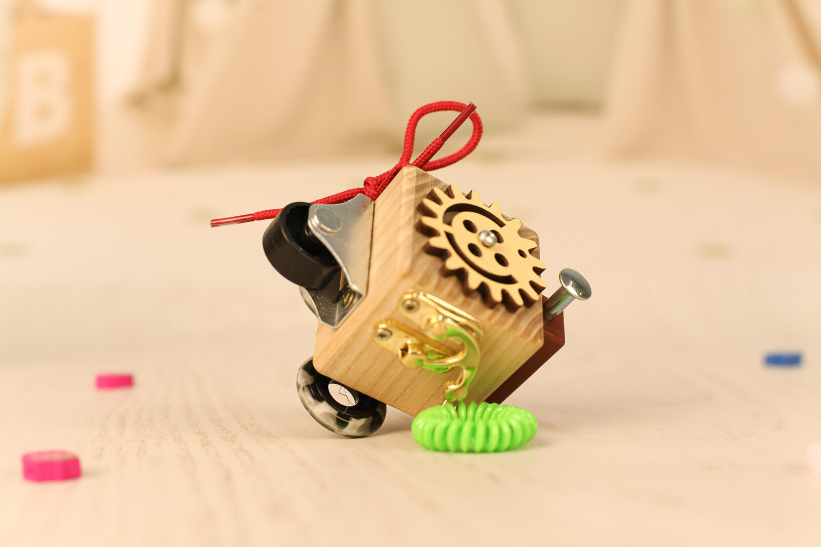 Montessori wooden baby toys for travel. Busy toddler toy, sensory busy cube, activity board