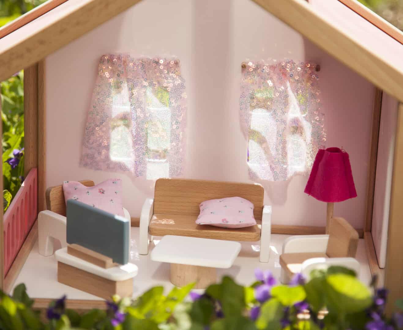 The house is equipped with toy furniture and is ideal for playing with small dolls and toy animals. You can choose a complete set of furniture "living room" or "bedroom" or order only one house without furniture.