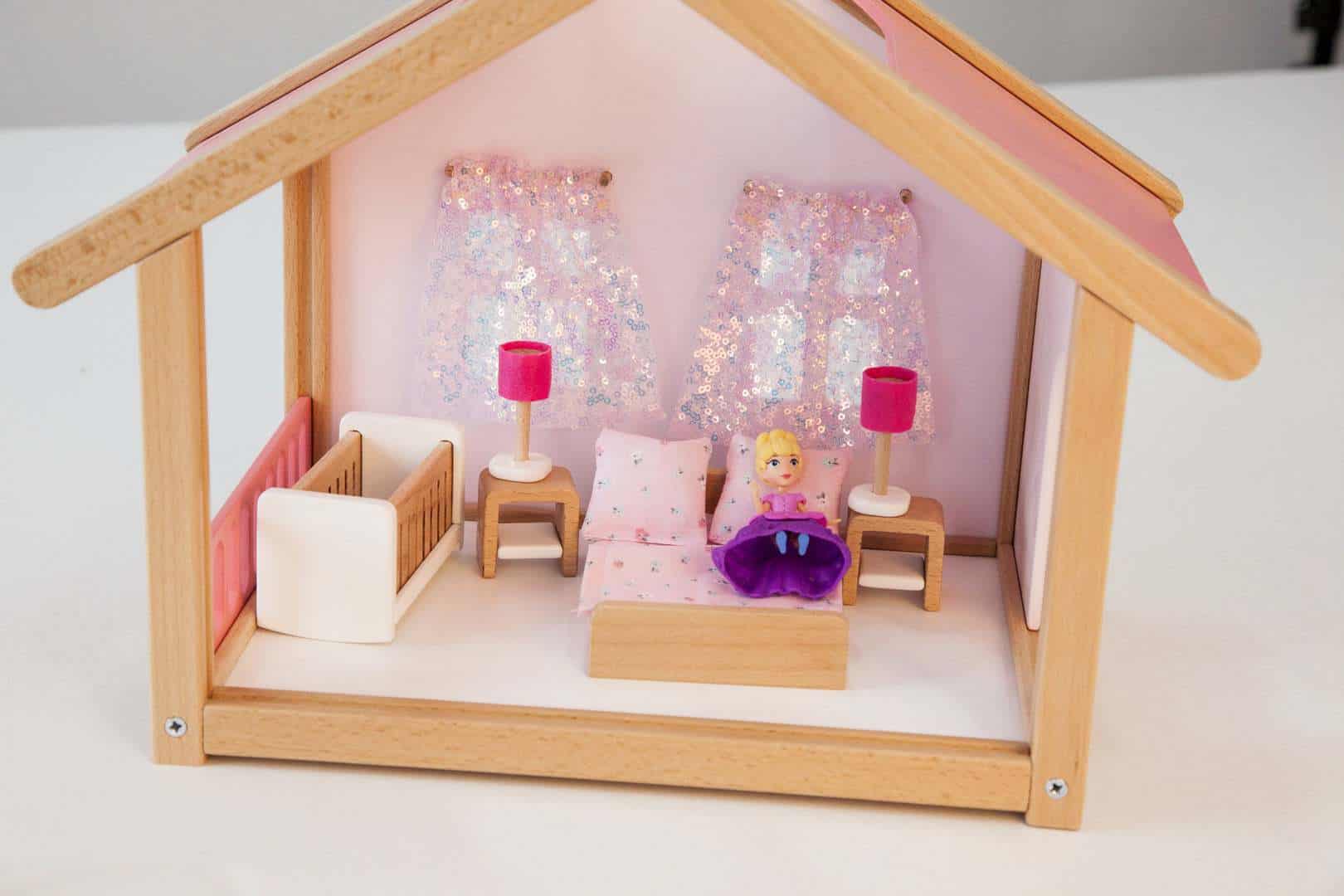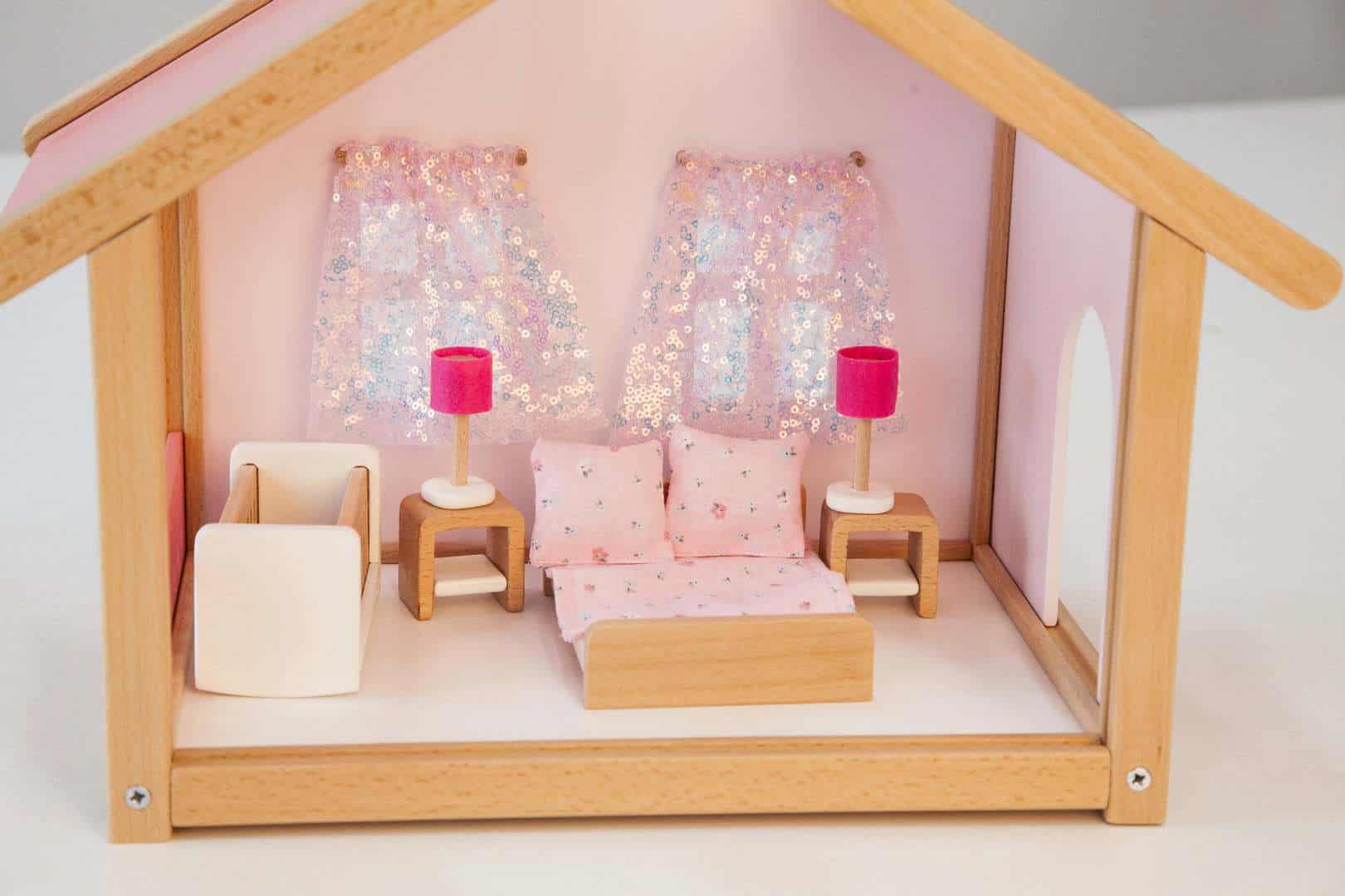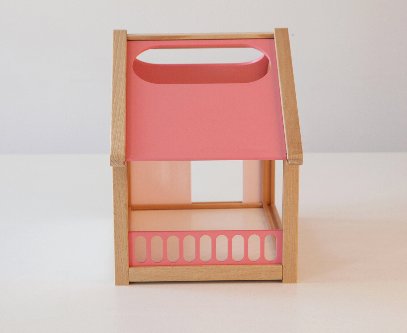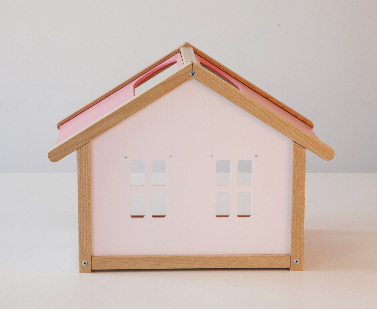 Pink wooden doll house with furniture Dollhouse kit Wooden Eco toy Fairy house Nursery decor