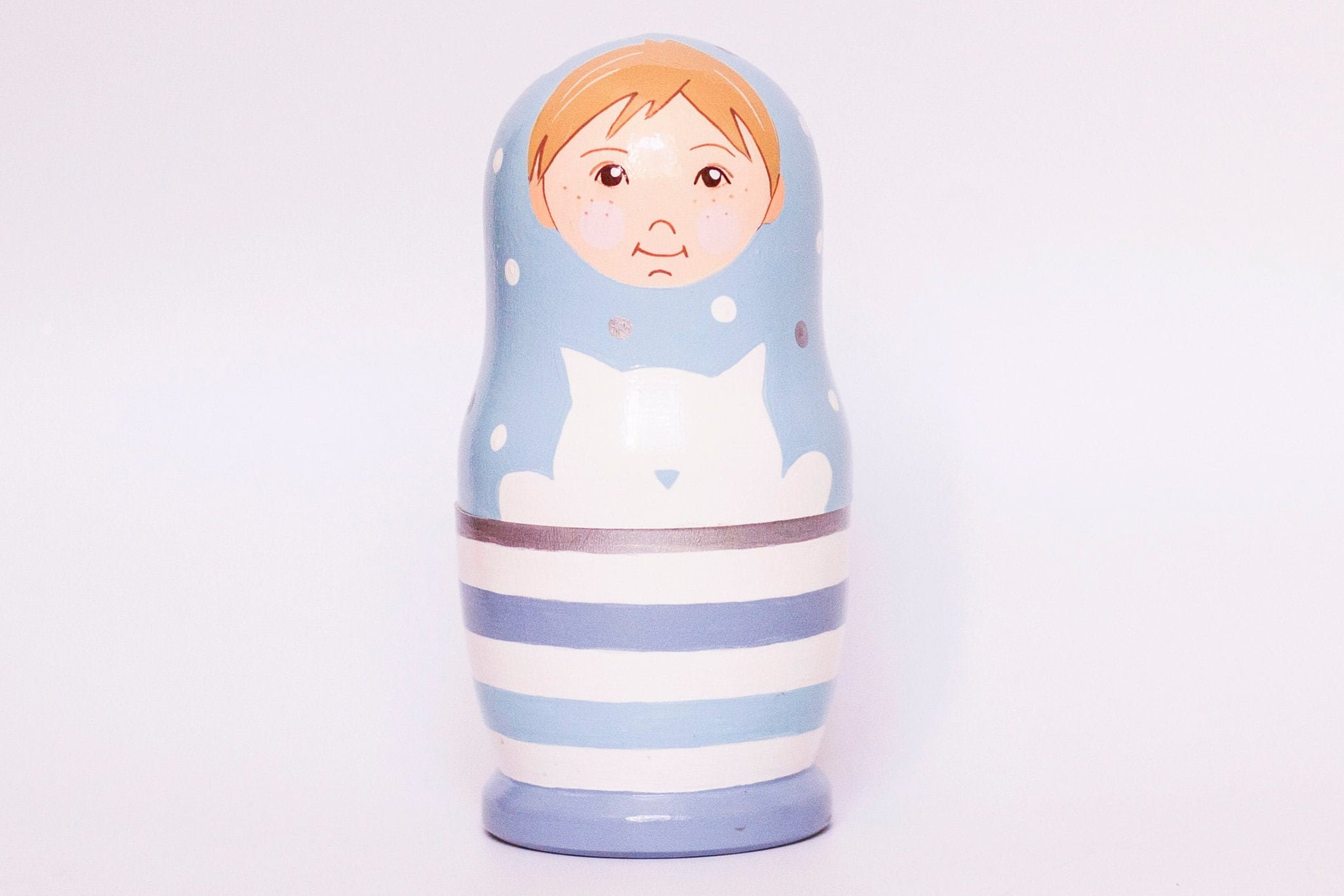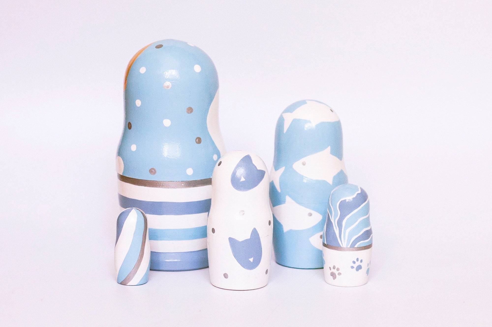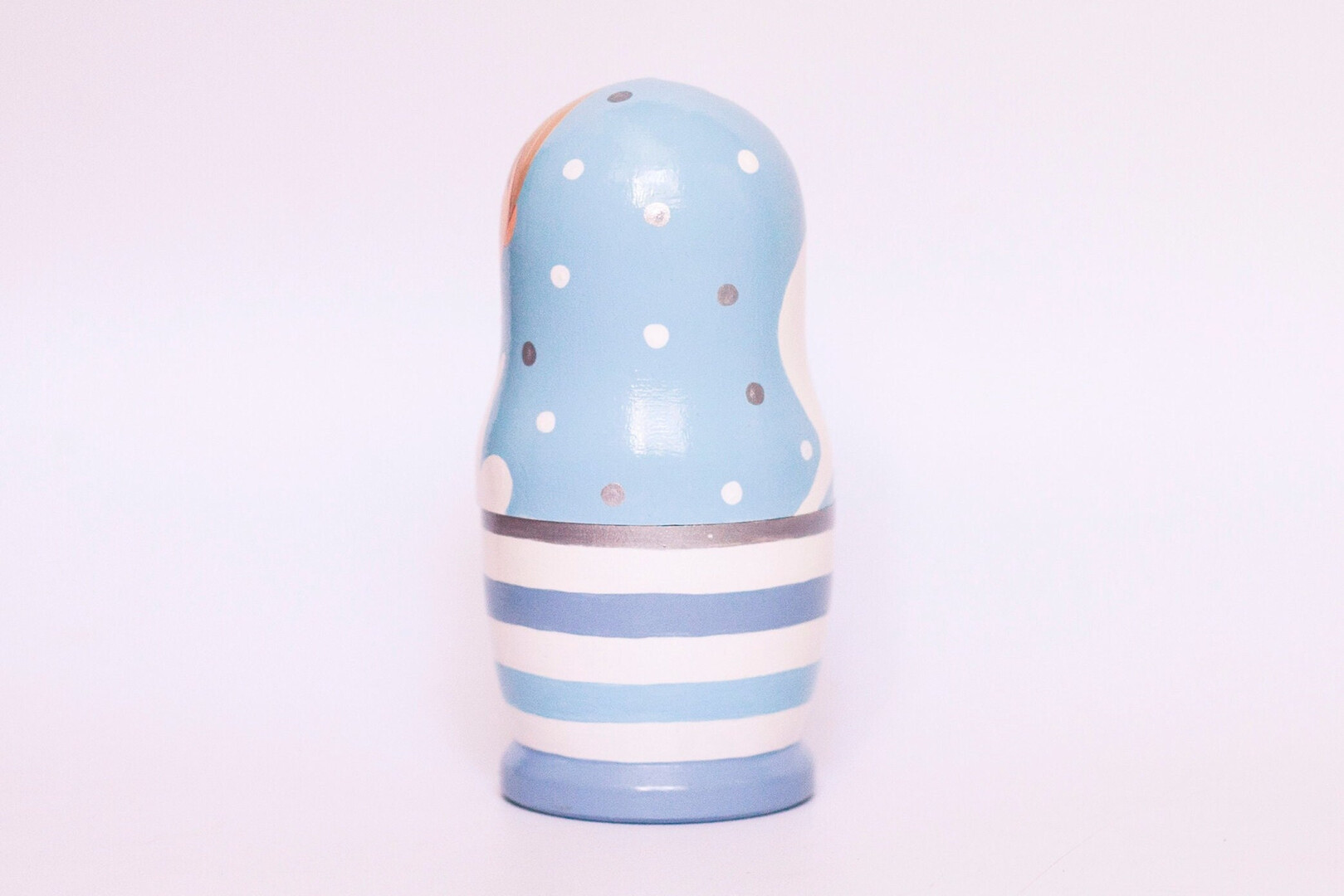 Custom Nesting Dolls - Ukrainian Matryoshka - Blue and White Nesting Doll 5 pcs - Gift for boy