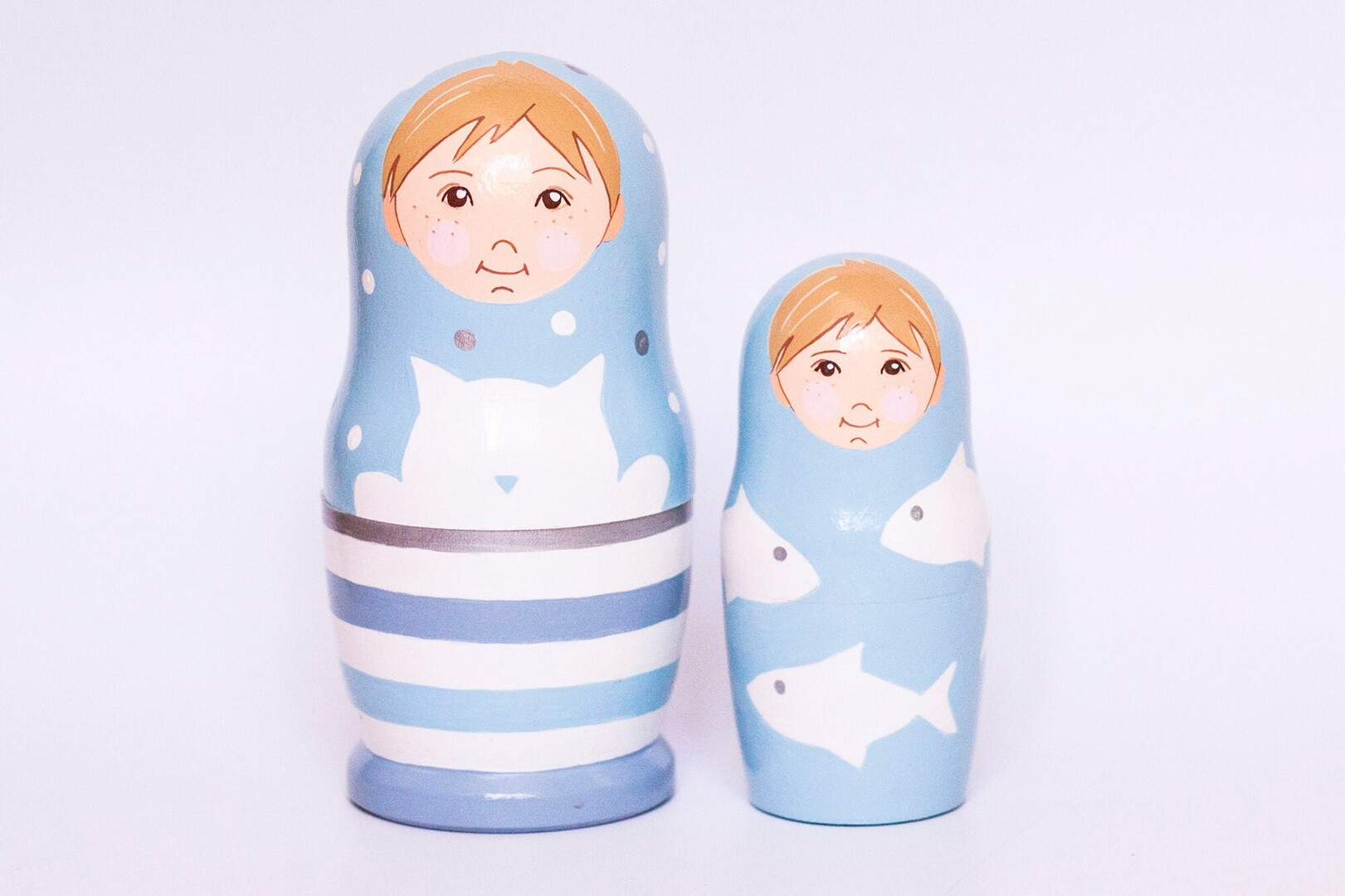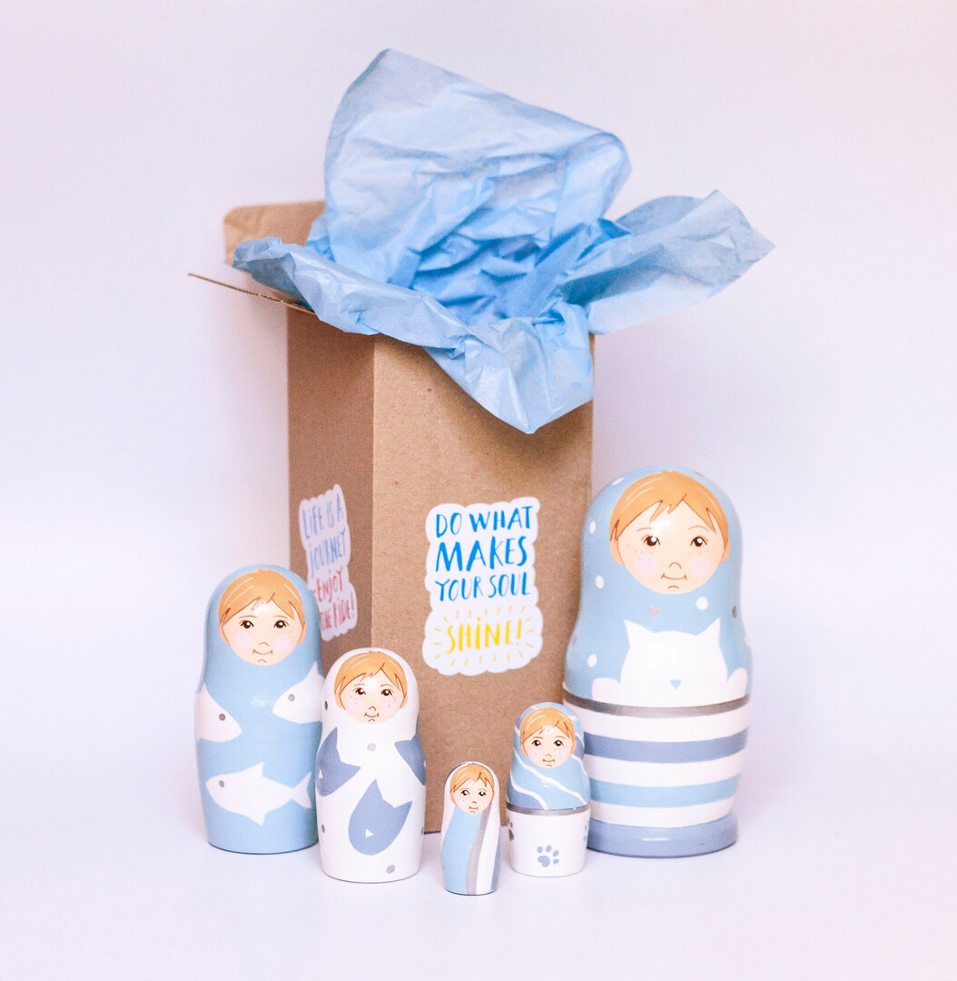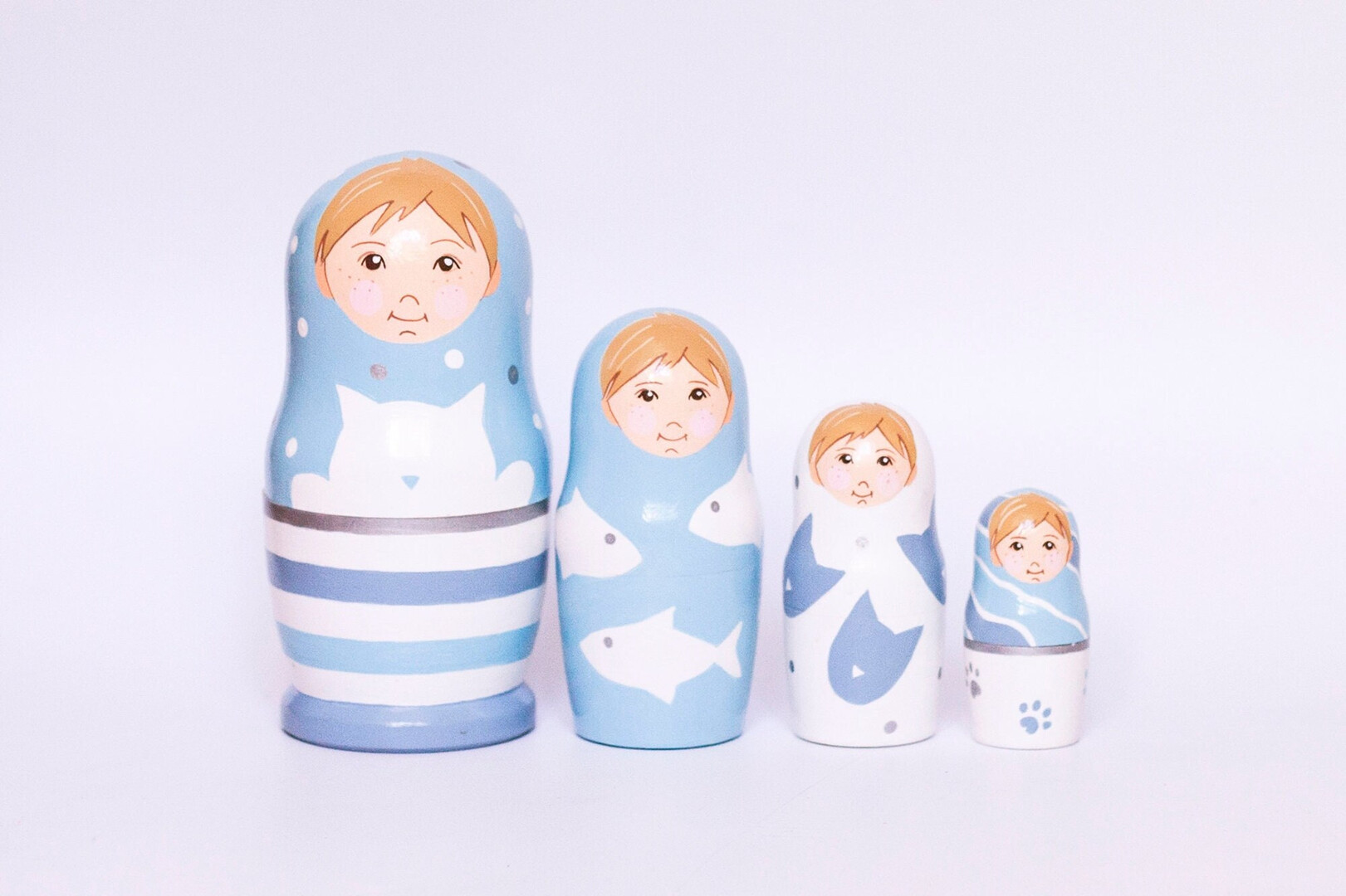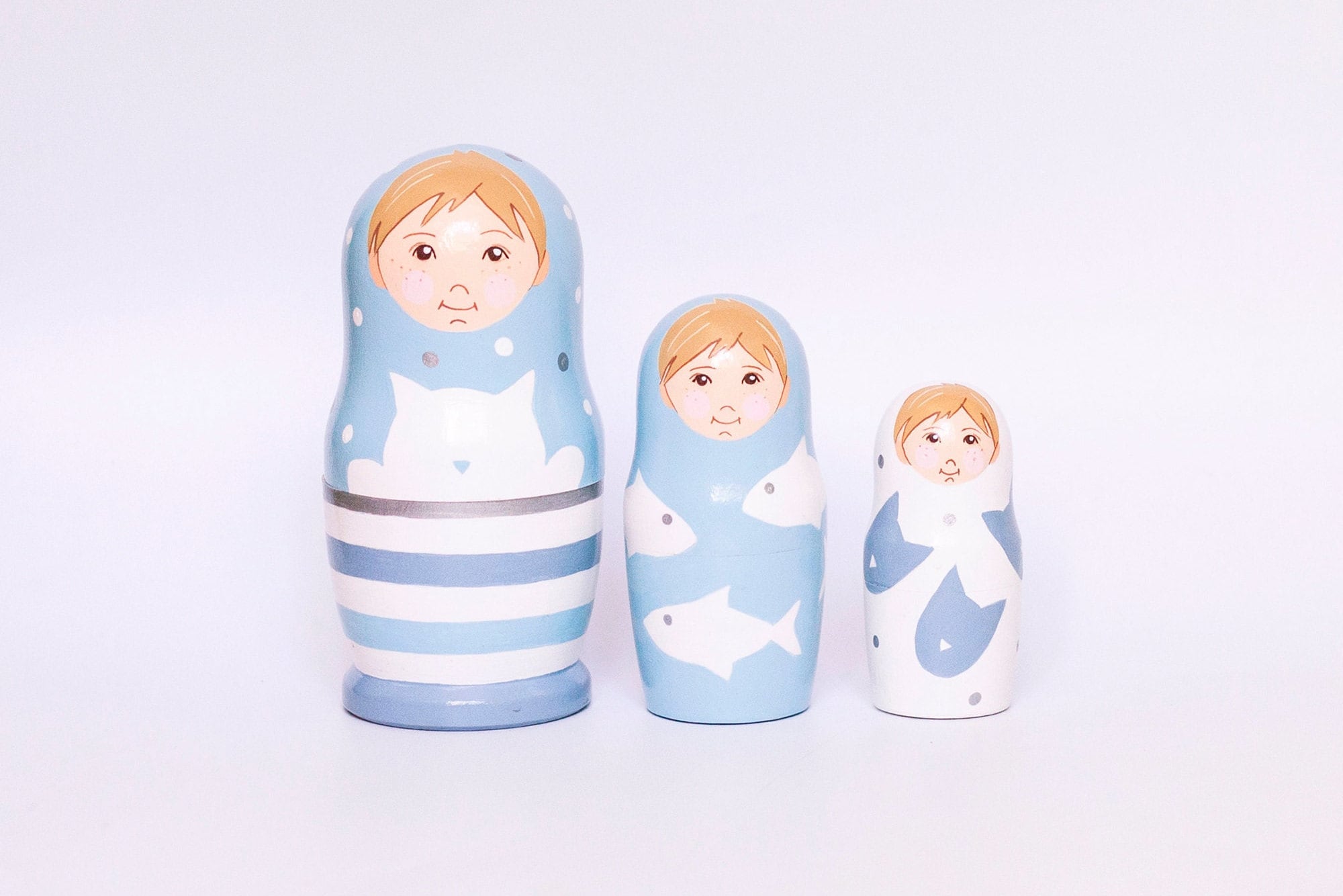 Custom Nesting Dolls - Ukrainian Matryoshka - Blue and White Nesting Doll 5 pcs - Gift for boy