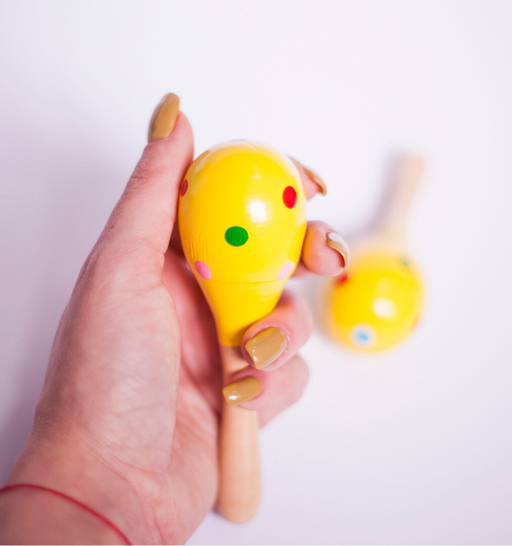 Wooden natural toys are hand-made and carefully painted. Xylophone and maracas will definitely please your baby and will look great on a children's shelf.