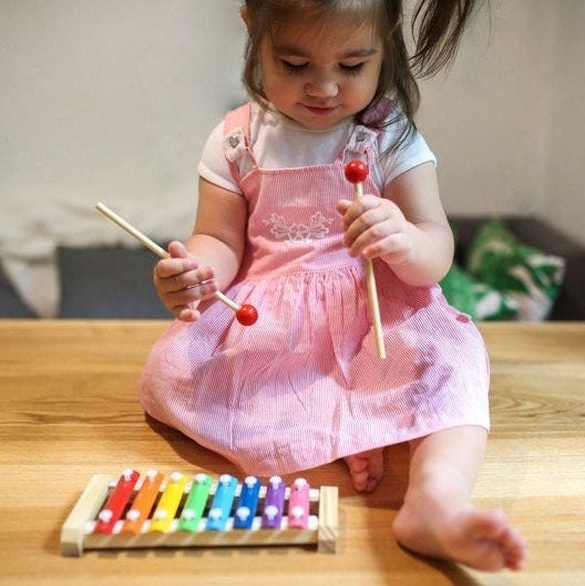 Wooden Xylophone And Maracas Baby Montessori Toys, New Born Gift Set, Kids Music Toys, Toddler Birthday Gift, Wood Music Toys, Godchild Gift