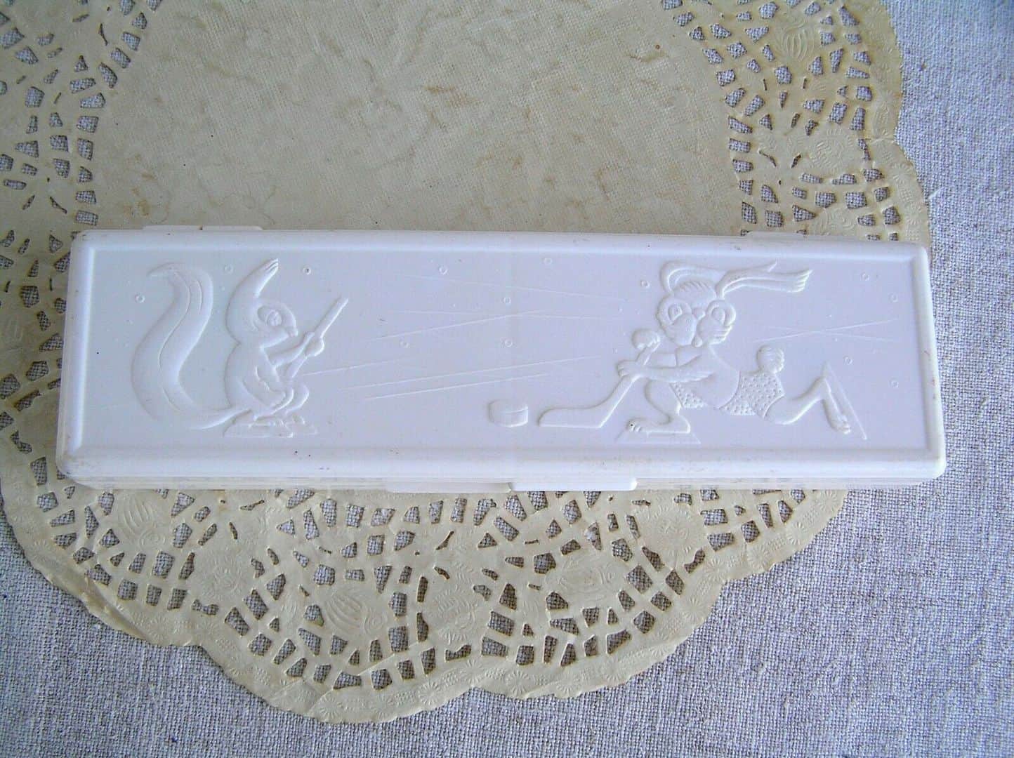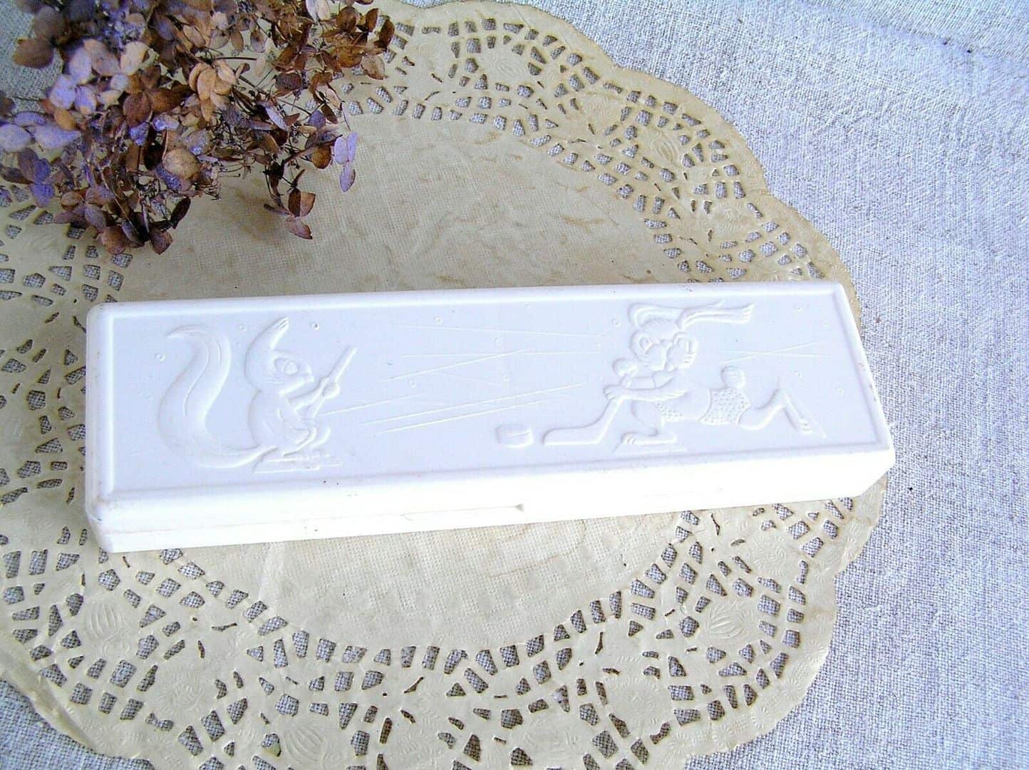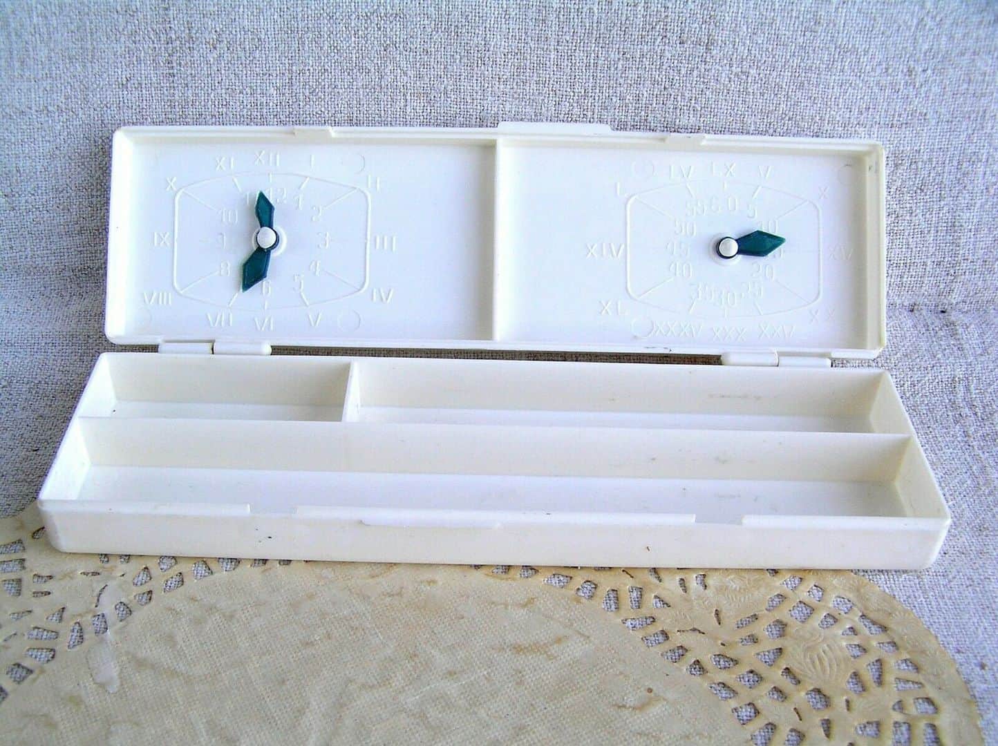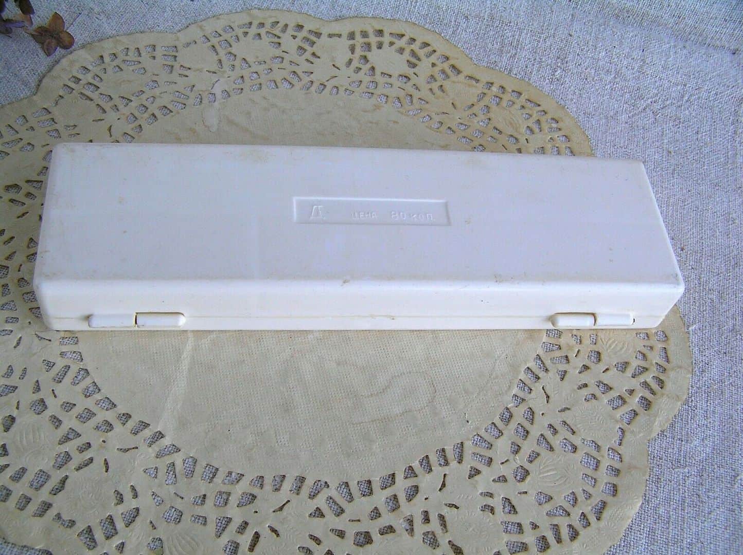 Vintage Soviet White Plastic Pencil Case With Learning Clocks School Accessories
