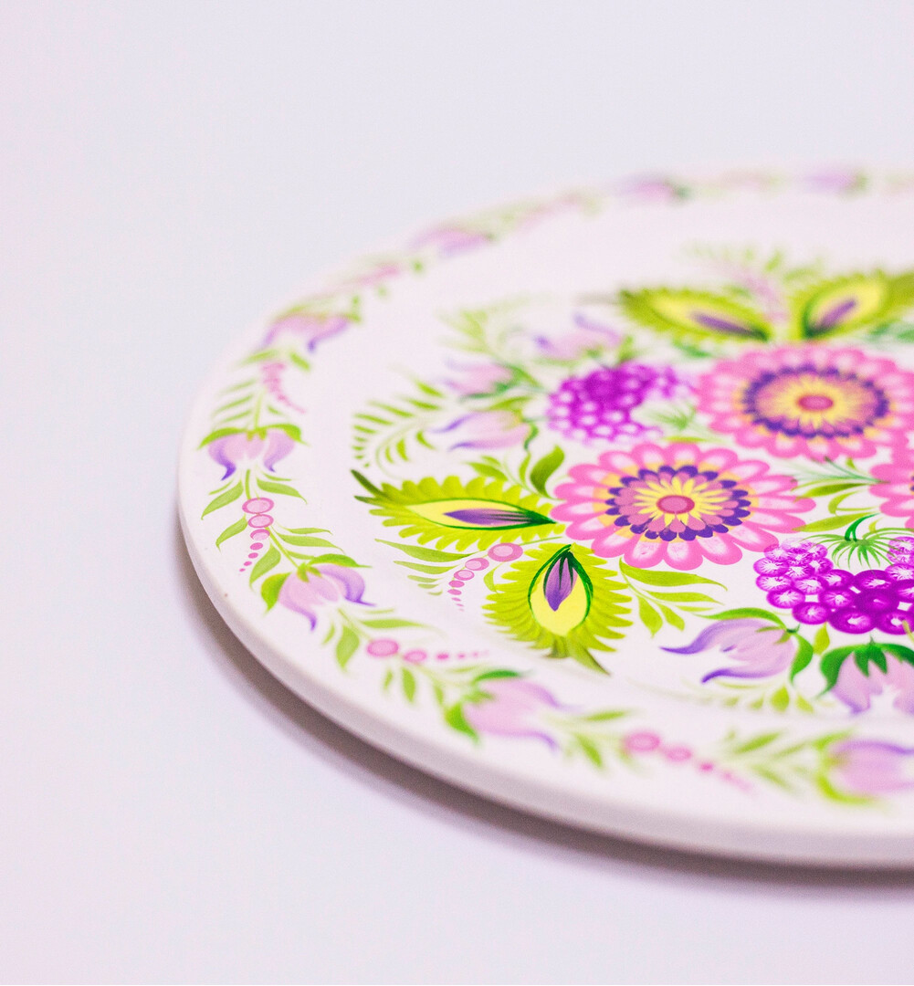 Each piece is signed by the Ukrainian artist. It was hand painted using acrylic paint for durability and is nontoxic. Our plates are useful and decorative for a dinner party as a serving tray of dried foods, to decorate a wall or counter top in your kitchen and also makes a colorful setting for your next party! It is the perfect gift for any occasion like a Birthday, Wedding, Mother's or Thanksgiving Day.