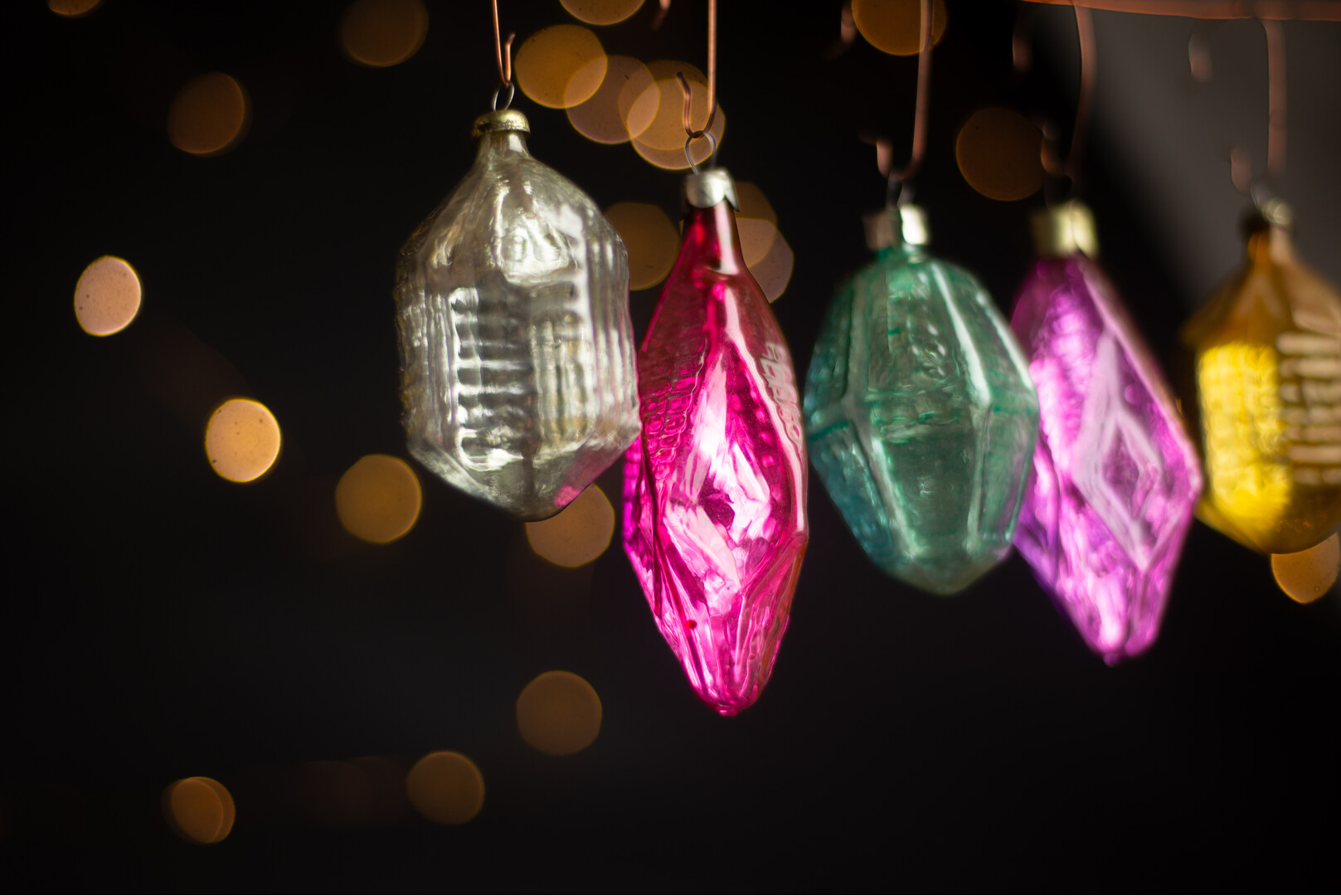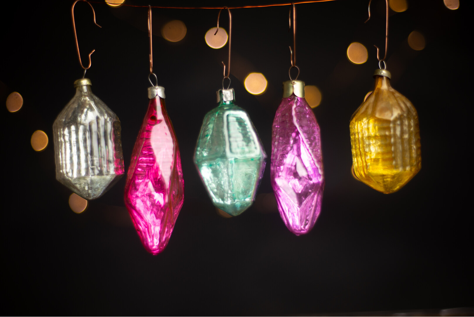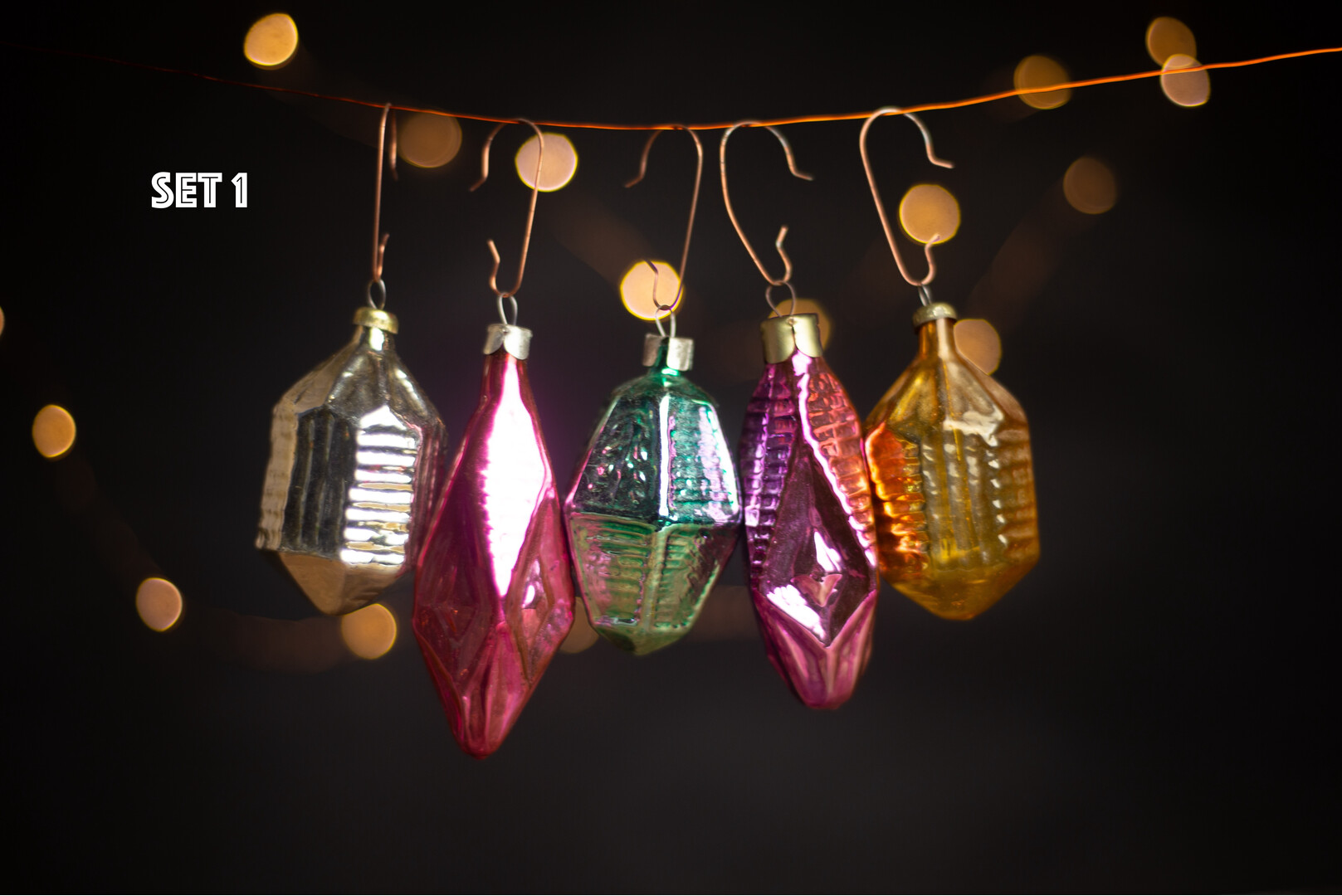 Turn up the color on your Christmas tree with this stunning set of vintage glass ornaments in vibrant hot pink. With their sculptural shapes and bold hue, these mid-century treasures bring joyful energy and boho glam to any holiday display. A perfect gift for collectors or anyone who loves a splash of retro charm!