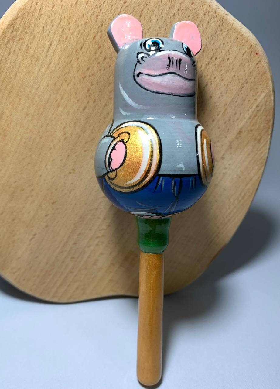 Maracas, Wooden Maracas, Musical Maracas, Painted Maracas, Maracas "Hippo", Rattle "Hippo", Wooden Rattle, Musical Instruments Maracas