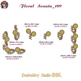 " Floral Sonata_109 " -  it's machine embroidery designs  Of series "Floral Sonata" made by Oksana Vushkan.  Please note: This is digital files for embroidery machine. You must have an embroidery machine and the software needed to transfer their from your computer to the machine to use this files. These designs is manually digitized by myself. No auto digitizing software is used. "Floral Sonata_109" are several small flower designs from which you can collect borders or embroider them yourself. The dimensions of the designs are indicated in the photo.  The borders is assembled using a non-woven template. How to make a template, see "Instructions for connecting designs" which comes with the set. Single flowers are good because using non-woven templates and turning each leaf little by little relative to the previous one, you can slightly round the border line.  The delivery set includes designs in machine formats: DST, XXX, JEF, HUS, PES, PEC, VIP, VP3, EXP , assembly instructions in English, files with design parameters and color palette, as well as templates for printing on a printer. You should be able to unpack the zip archive.  - It is your responsibility to observe the sizing of designs to insure compatibility with your machine. Even if the design is offered in your Format it is not a guarantee that the designs will be size compatible. You should know the size of the embroidery field of your embroidery machine (not to be confused with the size of the hoops ). The size of the field is the maximum size of the embroidery that can be embroidered on Your embroidery machine. If you have any questions about the size of the design before you make a purchase, it is better to specify whether the design will fit into Your hoops or not. To do this, you need to tell the size of Your hoops and the format you need.   - I never give away or sell EMB working files for any money, only machine formats are sold. If your format is not in the list of suggested ones, I will try to convert the design into the desired one, provided that I have such a converter. Resizing or editing of the designs is not recommended and I can not guarantee the quality of the designs if you alter them in any way. - All my designs are tested on embroidery machines before going on sale. I do not specifically create designs for leather and stretch materials and do not test them. Samples are embroidered on cotton fabrics, sometimes on fabrics with slight stretch, such as gabardine. Everyone's experience with embroidery is different. I focus on myself. If I achieved the desired result in the sample - the design is not pulled together, the fabric is not unraveling, there are no breaks in it, the outline is in its place, then you should have the same result. Failures may be due to a lack of experience in embroidery, improper stabilization, inappropriate material for a given design, or incorrectly adjusted technique.  - I recommend making a sample on the same or similar material before embroidering a design on a product. There are materials that can behave unpredictably in embroidery. From practice, I know that several materials from the same manufacturer, with the same price, and the same name may differ in quality. One material is more elastic, the other is flabby, loose, and of course they will behave differently in embroidery. Embroidering samples will save you from many problems and disappointments.  - What is zip files, how to open an embroidery file on your computer, how to embroider complex designs. The answers to these questions, see the additional photos to this product.  Purchased designs can be embroidered on items for personal use or for small commercial purposes, provided that the source is indicated as "Embroidery Design by "Embroidery Studio ONA". You may not redistribute this electronic product free of charge or resell it to third parties.  I hope You enjoy my design. I would be glad to receive your feedback on my designs.    Thanks for visiting my shop