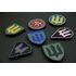Each box contains a coin dedicated to a different branch of the military - Air Force, Ground Forces, Marine Corps and many others. Each box is stylized according to the chevron of the military branch.