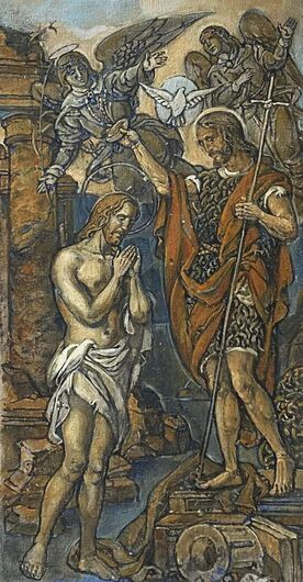 Oleg Litvinov's painting "Baptism", 2005, oil on canvas, without a stretcher, size 47x22 cm, See the condition in the photo.