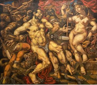 Картина Олега Литвинова "Samson and Delilah", 2022 маслом на холсте 90х103 см без подрамника