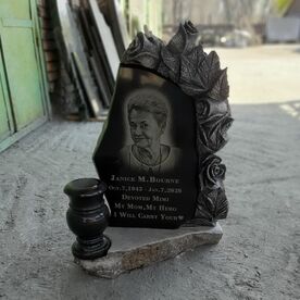A Timeless Tribute with Personalized Elegance Crafted from premium black granite, this headstone features a delicately hand-carved rose , giving the graceful impression of a flower gently placed on the stone — a symbol of love and memory that lasts forever. Price includes: ✔️ Headstone top & base ✔️ Detailed front-face engraving with your custom text & design ✔️ Full-color graphic proof before engraving ✔️ UPS delivery to your address Why Choose Us? We specialize in custom headstones. Have a vision in mind? If you can describe it — we can create it . From religious motifs to portraits, nature elements to cultural symbols, we bring your ideas to life in stone. Flexible designs, guaranteed approval. Our designer will send you a graphic proof after purchase. You’ll have full control before engraving begins. If we can’t achieve a design that meets both your expectations and cemetery rules, we’ll refund you in full — no questions asked. Transparent communication, no surprises. You’ll receive photos of the finished headstone before we ship , and we’ll never start engraving without your written approval. Shipping & Inspection We deliver directly to your address via UPS . Upon arrival, please inspect the package before signing. If any damage is found, refuse delivery, take a photo, and contact us immediately. Once signed for, we consider the item accepted in good condition. ⚠️ Important Notes Check with your cemetery first. Every cemetery has its own rules for monument size, material, and design. Please confirm your plot's requirements before ordering. You're in control. You're responsible for final placement of the stone and must approve the engraving proof. Mistakes caught after engraving will incur a $300+ correction fee , so please review carefully! We reserve the right to use photos of finished headstones for promotional purposes unless otherwise agreed upon. If you'd prefer we don’t — just let us know. Dimensions & Weight Top (HxWxT): 50 x 50 x 8 cm (20 x 20 x 3 in) Weight: 55 kg / 135 lbs Base (HxWxT): 15 x 60 x 20 cm (6 x 24 x 8 in) Weight: 64 kg / 143 lbs Whether you want a classic monument or a fully personalized tribute, we’re here to create a lasting legacy. Reach out with your ideas — and let us do the rest.