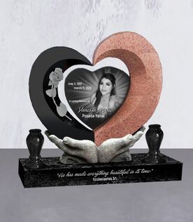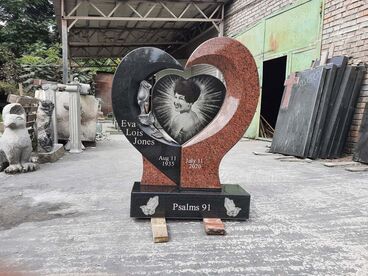 Elegant black granite headstone with hand-carved heart. Includes custom front engraving. Top & base included.  Honor your loved one with a timeless and elegant black and red granite headstone, hand-carved with a heart motif. We specialize in custom granite memorials and can bring to life any idea you have. Whether it's a portrait, unique symbol, or custom layout—just message us your vision and we’ll create a meaningful tribute for you. ✨ What's Included: Hand-carved black granite headstone (TOP + BASE) Front-face custom engraving Personalized layout design for your approval before engraving ✨ Stone Dimensions: TOP (HxWxT)      110x90x16 cm  or 43x35.3x6,3 in BASE (HxWxT)       20x80x20 cm  or  7,8x31.5x7,8 in weight 240kg or 550 lb ✨ Shipping Info: - Shipping available only to the nearest customs warehouse or international airport (USA, Australia, and select other regions) - Customs duties may apply depending on your location - You will need a customs broker for clearance—if needed, we can assist you with one after purchase - Add item to cart for real-time shipping rates calculated by Etsy ✨ Before You Order: - Please check with your cemetery for any rules regarding size, material, and design - We will send you a custom layout for approval before engraving begins - No engraving starts until you confirm the layout ✨ Want a custom size or design? We can adjust the dimensions or create a one-of-a-kind design just for you—send us a message to discuss your needs. ✨ Note: We may showcase layout mockups and photos of completed work in our shop and on social media.