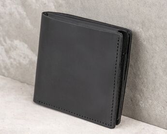 Mens wallet • Dimensions when closed: 3” x 4.1” x 0.3” (7.5 x 10.5 x 1 cm) • Weight of wallet (alone): 1.4 oz (40 g) • Holds up to 6 credit cards, ID, and can fit the folded note of “emergency” cash • Pull-tab for quick card retrieval