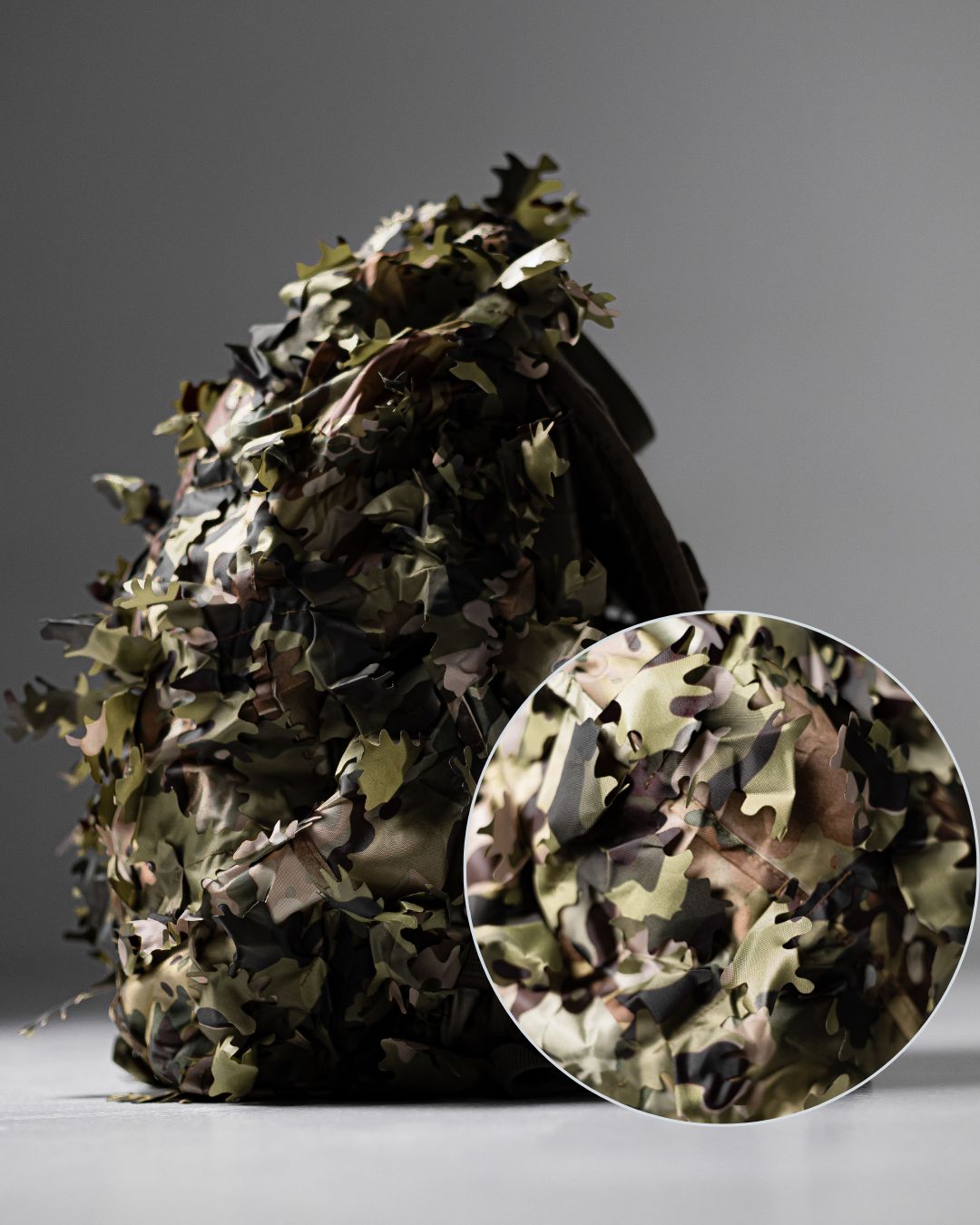 - Functionality: equipped with thin straps for attaching additional camouflage or gear.
