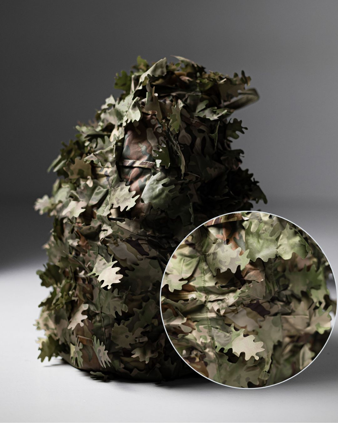 Functionality: equipped with thin straps for attaching additional camouflage or gear.