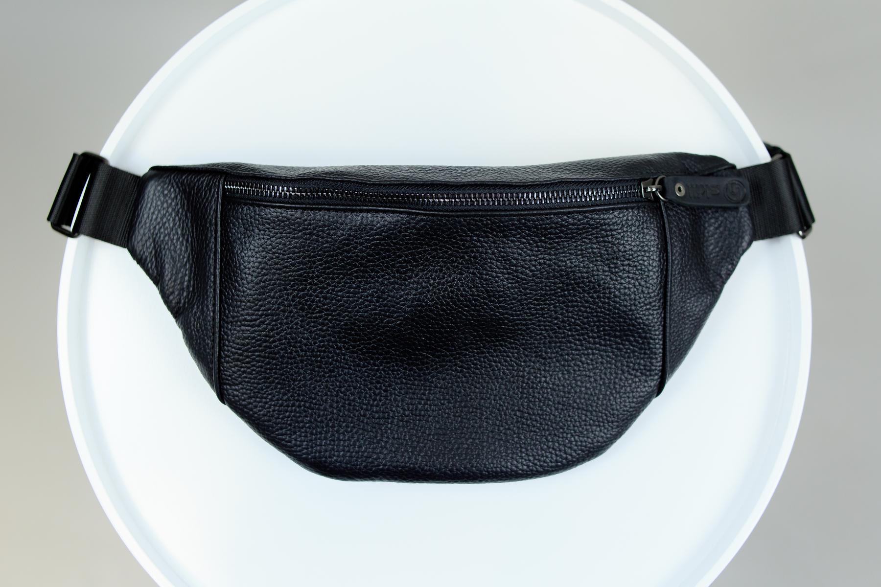 Men’s Waist Bag in Black Genuine Leather – a stylish leather belt bag for city life and travel