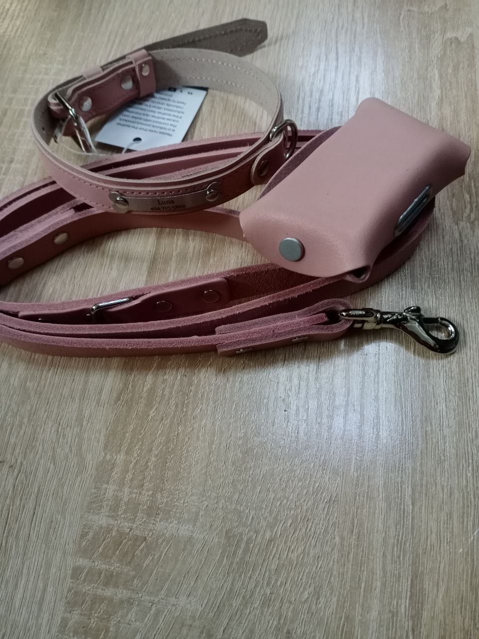 Set of 2 dog leash and 2 dog collar, 2 dog poop bag.
