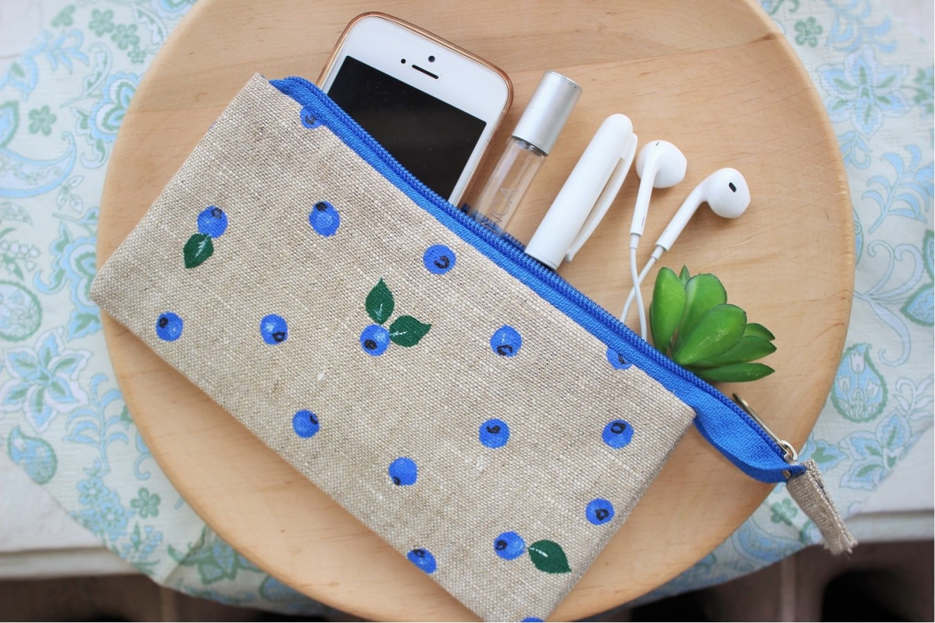 Blueberry linen pouch Blueberry makeup bag Blueberry purse Linen pencil case Linen makeup bag Linen bag Bridesmaids gift Gift for girl