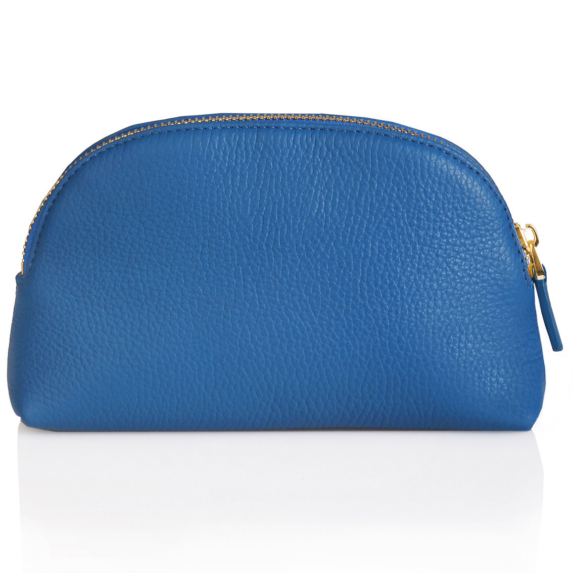 Leather Cosmetic Bag, Genuine Blue Leather Pouch, Leather Makeup Case, Make Up Leather Toiletry Bag, Blue Cosmetic Bag Pouch KF-278