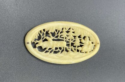 Vintage handmade Chukchi brooch, intricately carved with a lifestyle scene inspired by Inuit traditions. A unique piece of Arctic folk art jewelry, perfect for collectors of Indigenous carving and storytelling ornaments. Dimensions: • 5.5 × 3 cm (2 1/4" × 1 1/4") • Weight: 5 g Condition: Good vintage condition (see photos), but there is no clasp (lost)! Shipping Information: • Ships from Ukraine • Estimated delivery to the USA & Europe: 2-3 weeks. Ready to ship now!