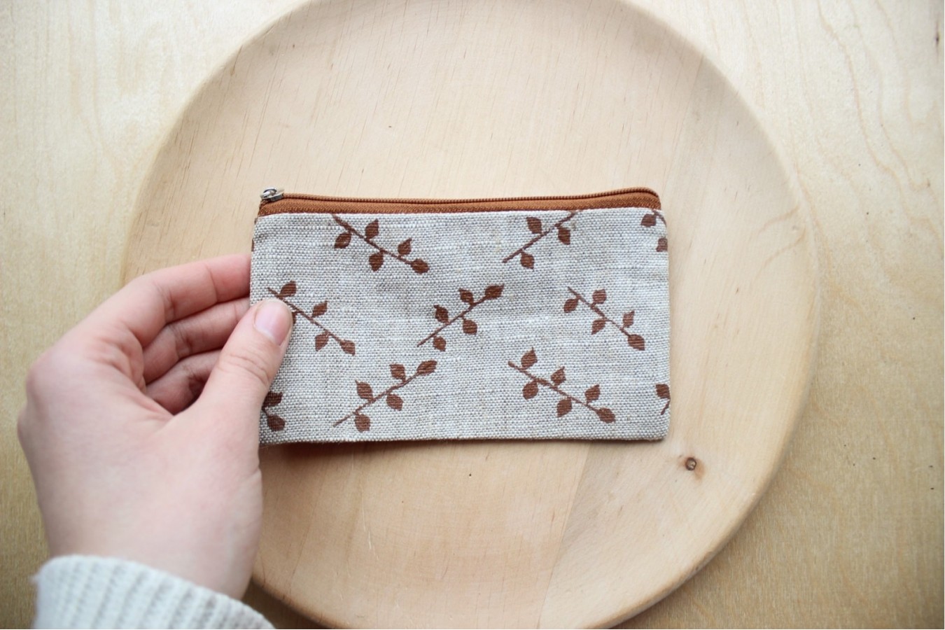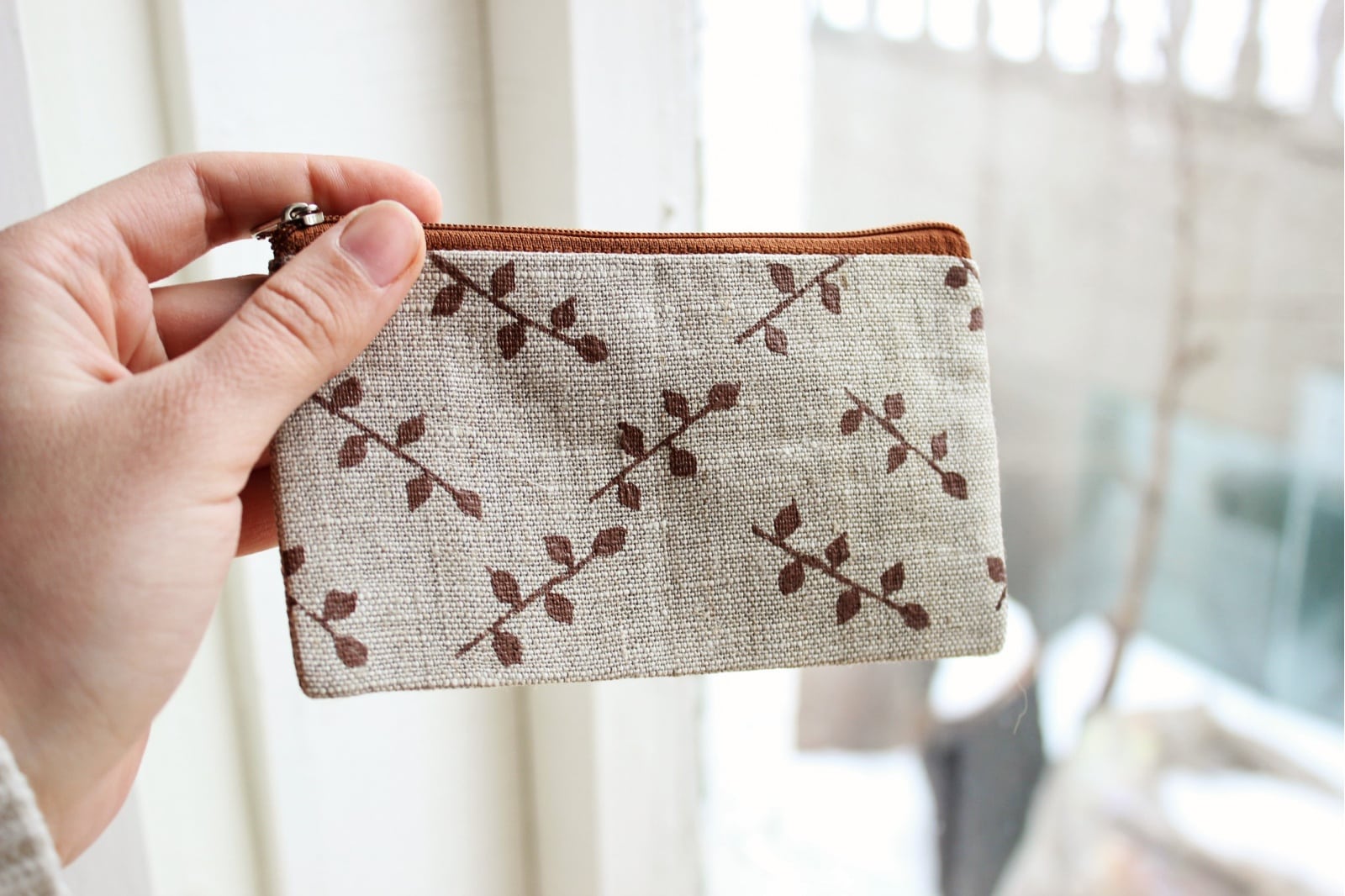 Leaf coin purse Linen zipper pouch Autumn leaf purse Small pouch Linen purse Makeup bag Linen pouch Zipper pouch For her For girl