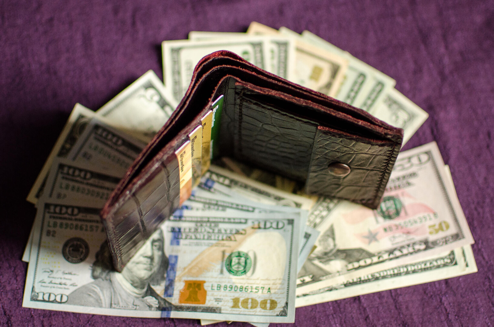 Mens Leather Wallet - Esquire - Dark Brown Leather, Burgundy, Genuine Leather - Grand Tartaria