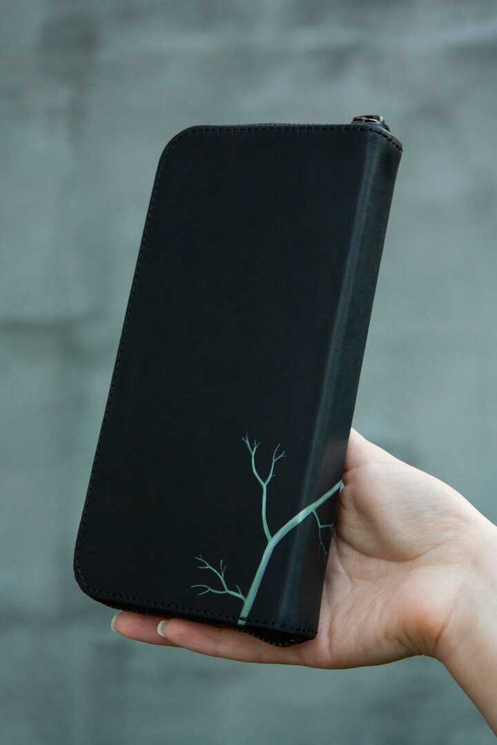 New Year Gift, Women Wallet, Men Leather Purse, Wallet Zipper, Black Card Holder, Large Woman Purse, Blue Hummingbird, Black Leather Wallet
