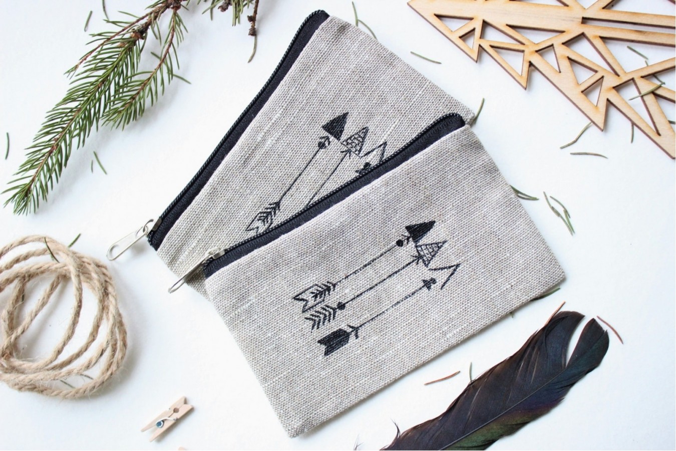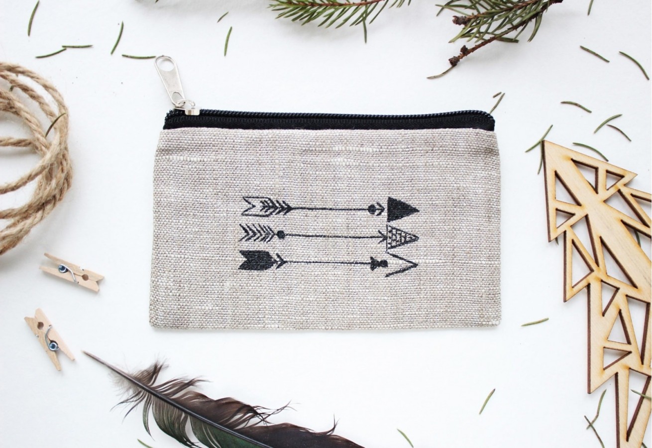Zipper pouch Linen purse Arrows purse Linen pouch Arrow pouch Credit cards case Makeup bag Linen makeup bag Arrow bag Girlfriend gift