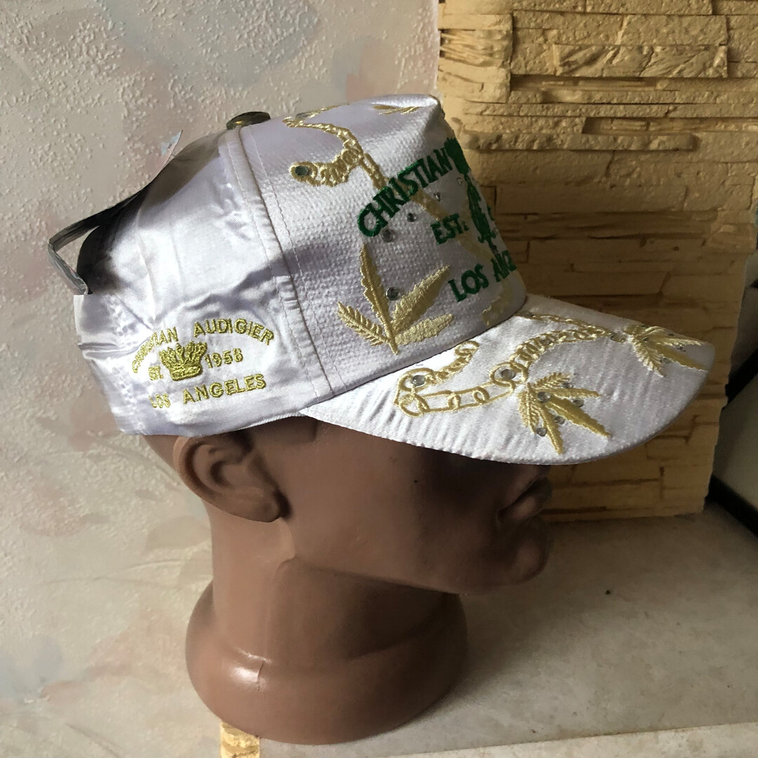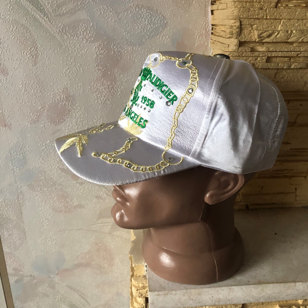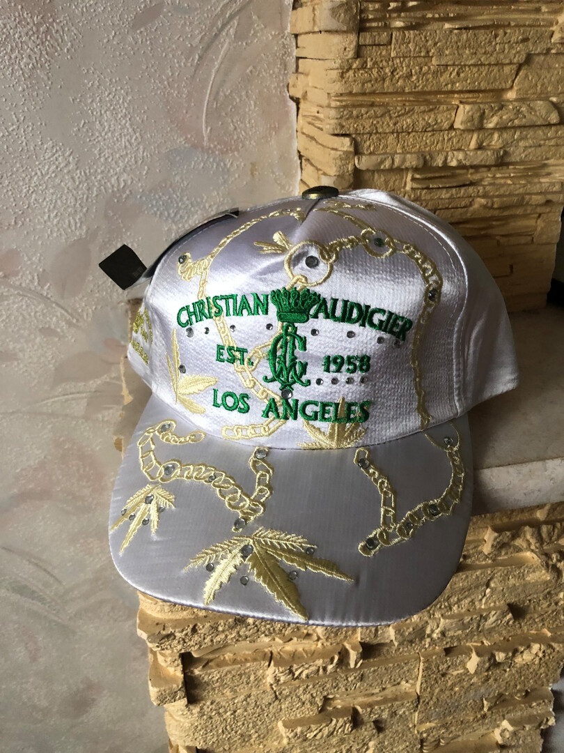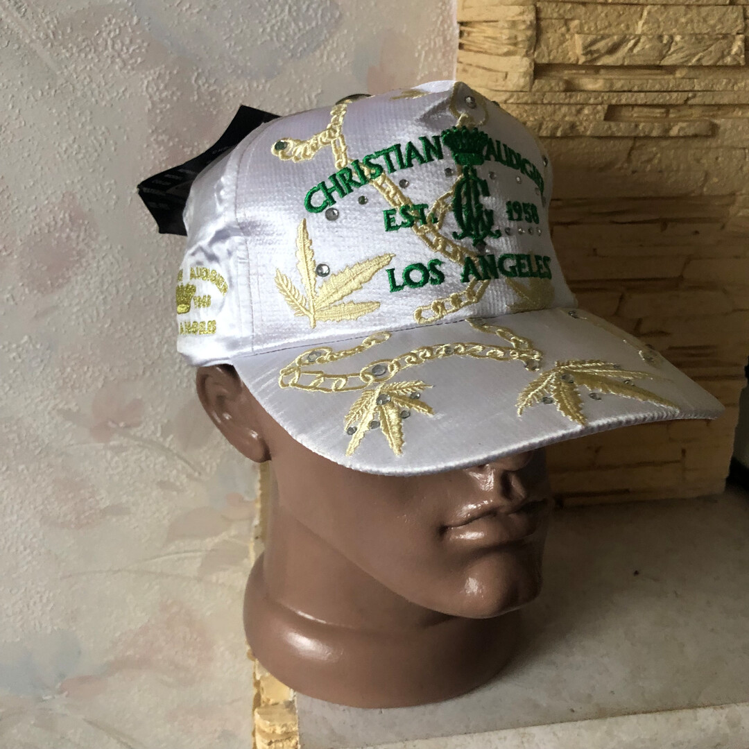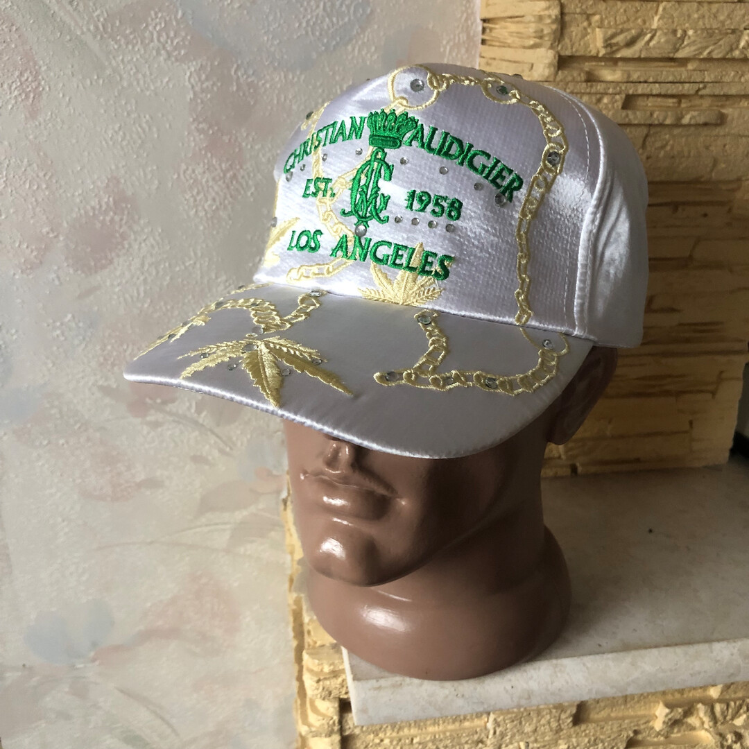 Glamorous shocking white satin embroidered baseball cap unisex Christian Audigier for the stylish and charismatic