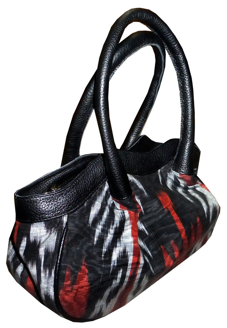 designer handmade handicraft natural silk ikat genuin leather bag, tote, hand bag, shoulder bag from uzbekistan #a11103