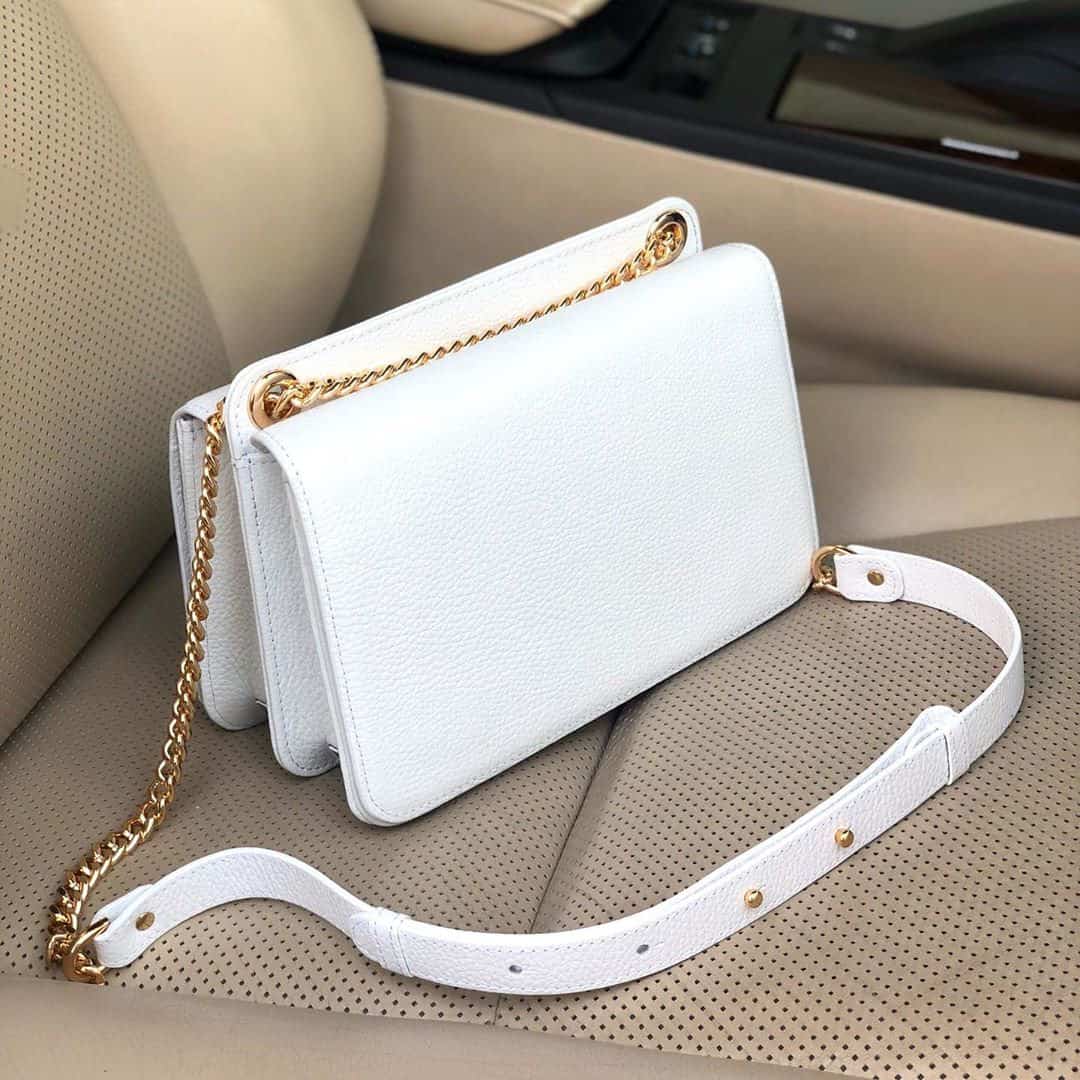 Leather Bag on a chain, White Leather Bag, Women's Leather Bag KF-3538