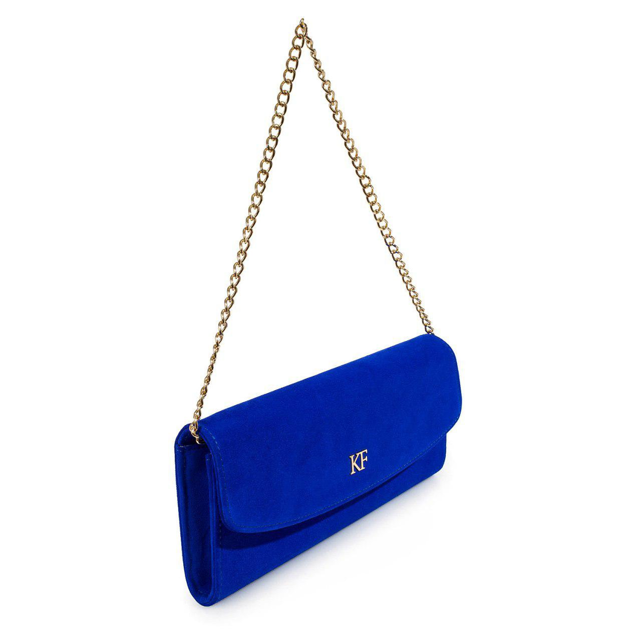 Leather Clutch, Suede Leather Clutch Bag Purse, Blue Leather Clutch KF-3216