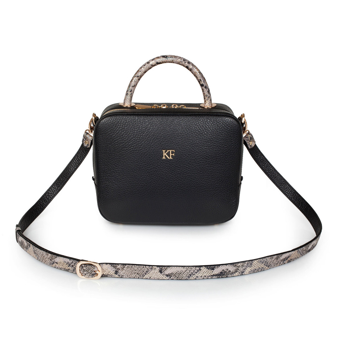 Leather Top Handle Bag, Black Leather Handbag Top Handle, Women's Leather Bag KF-2832