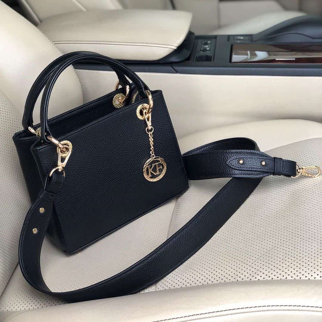 Leather Top Handle Bag, Black Leather Handbag Top Handle, Women's Leather Bag KF-3742