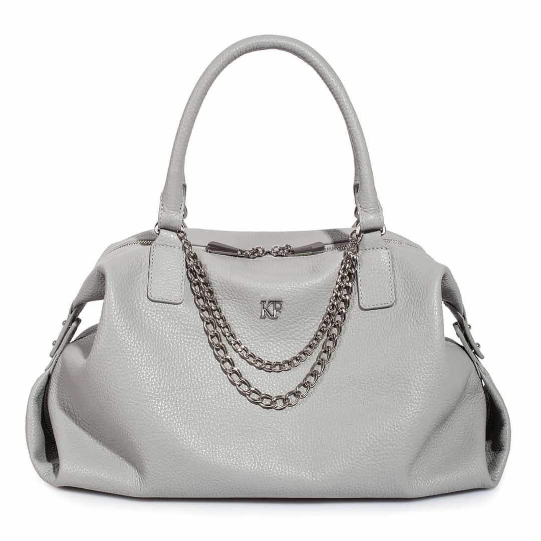 Leather Top Handle Bag, Grey Leather Handbag Top Handle, Women's Leather Bag KF-255