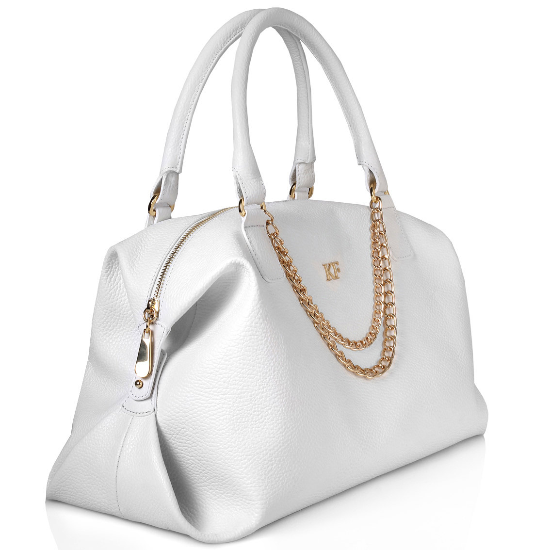 Leather Top Handle Bag, White Leather Handbag Top Handle, Women's Leather Bag KF-218