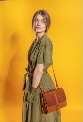 This leather purse is inspired by the spirit of Great Britain. So there is an idea to take this leather satchel and go to Cambridge. The satchel bag is made in dark brown color that's why it looks great with any outfit.