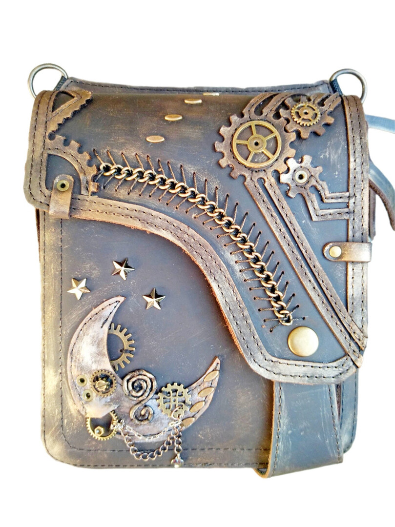 The bag is made of genuine leather and is made in steampunk style. The bag has one compartment, three pockets, two removable length-adjustable straps. The bag is decorated with a Fox applique, at the request of the customer. You can choose a different theme for the applique and I will make your bag in 3 days. Write, I answer quickly.