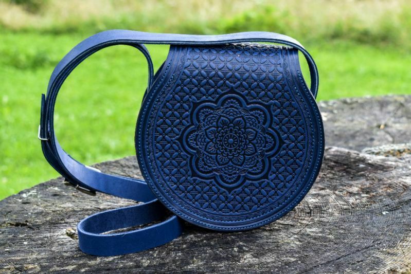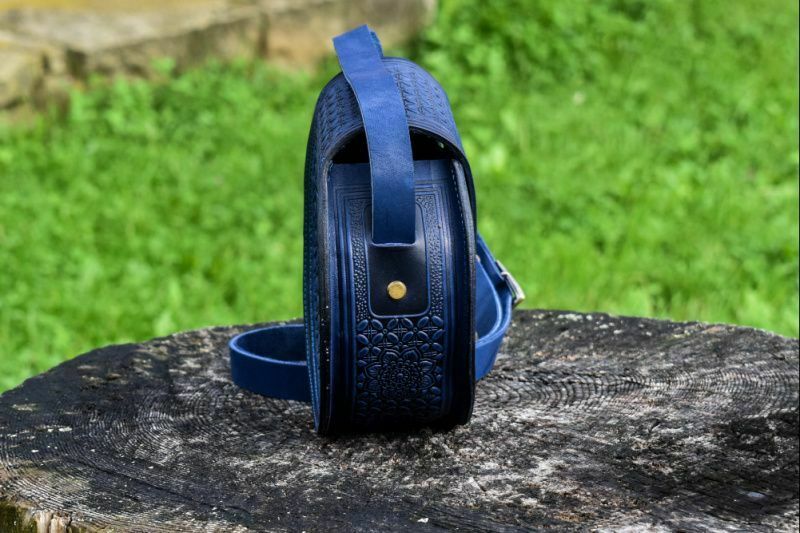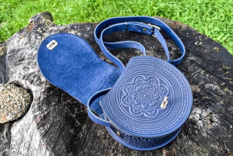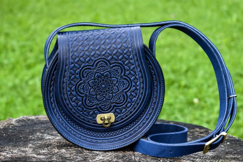 Women's Blue HANDMADE embossed LEATHER bag lady's Handbag COLORIT