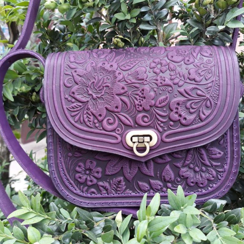 Women's Multicolor HANDMADE embossed LEATHER bag lady's Handbag FLOWER