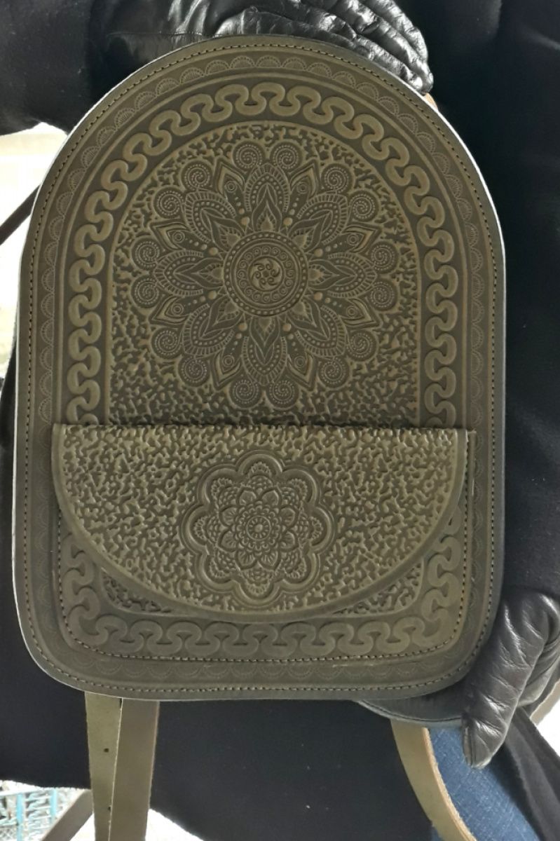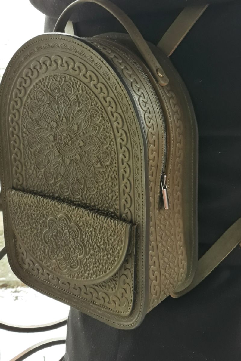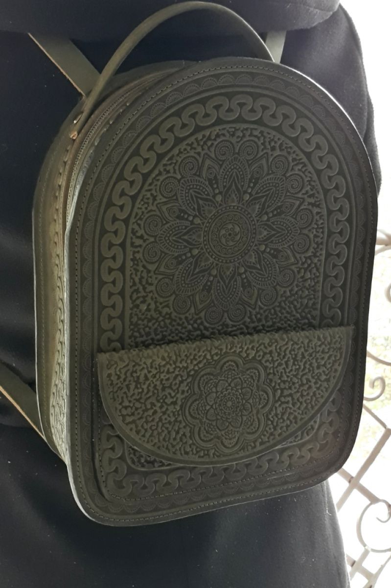 Women's Olive HANDMADE embossed LEATHER bag lady's Handbag TALISMAN