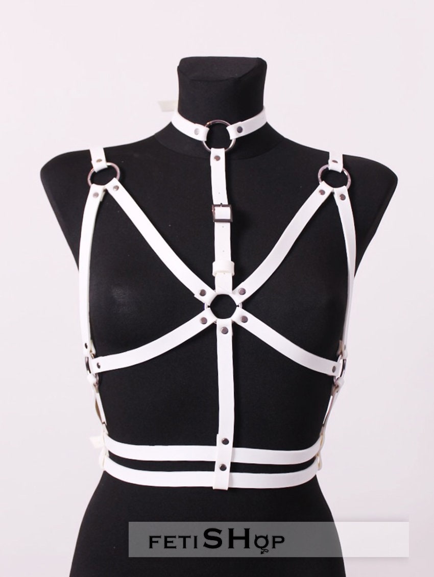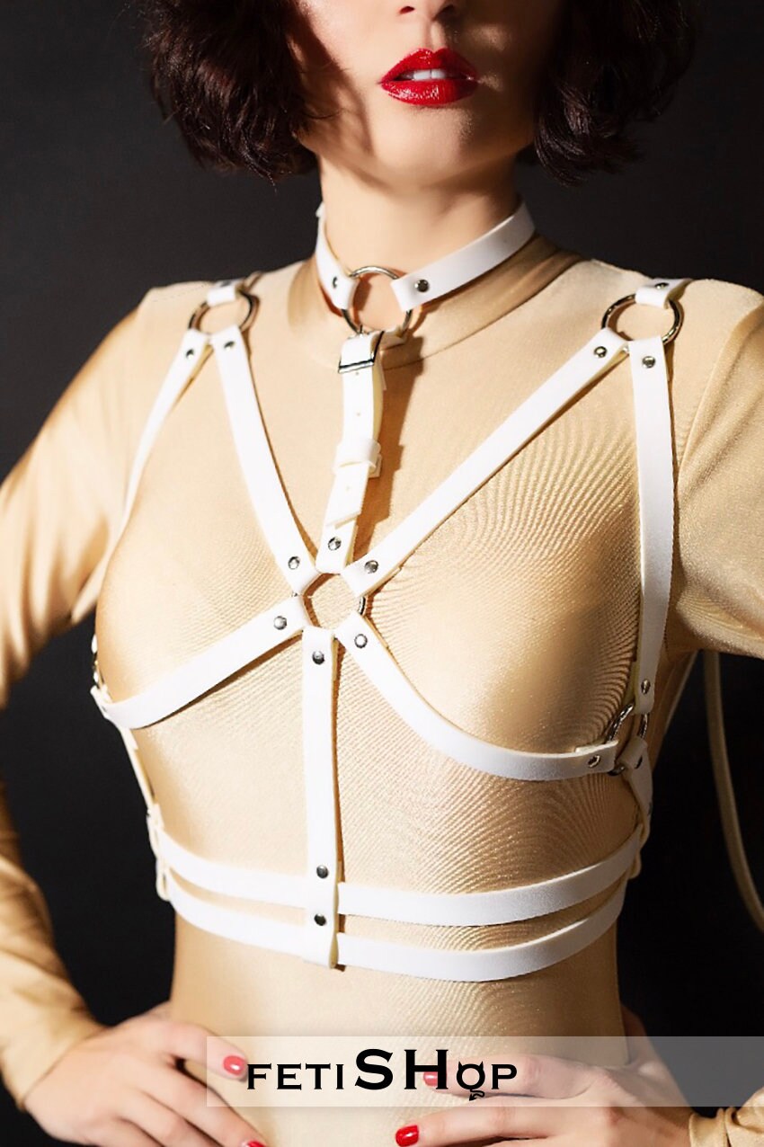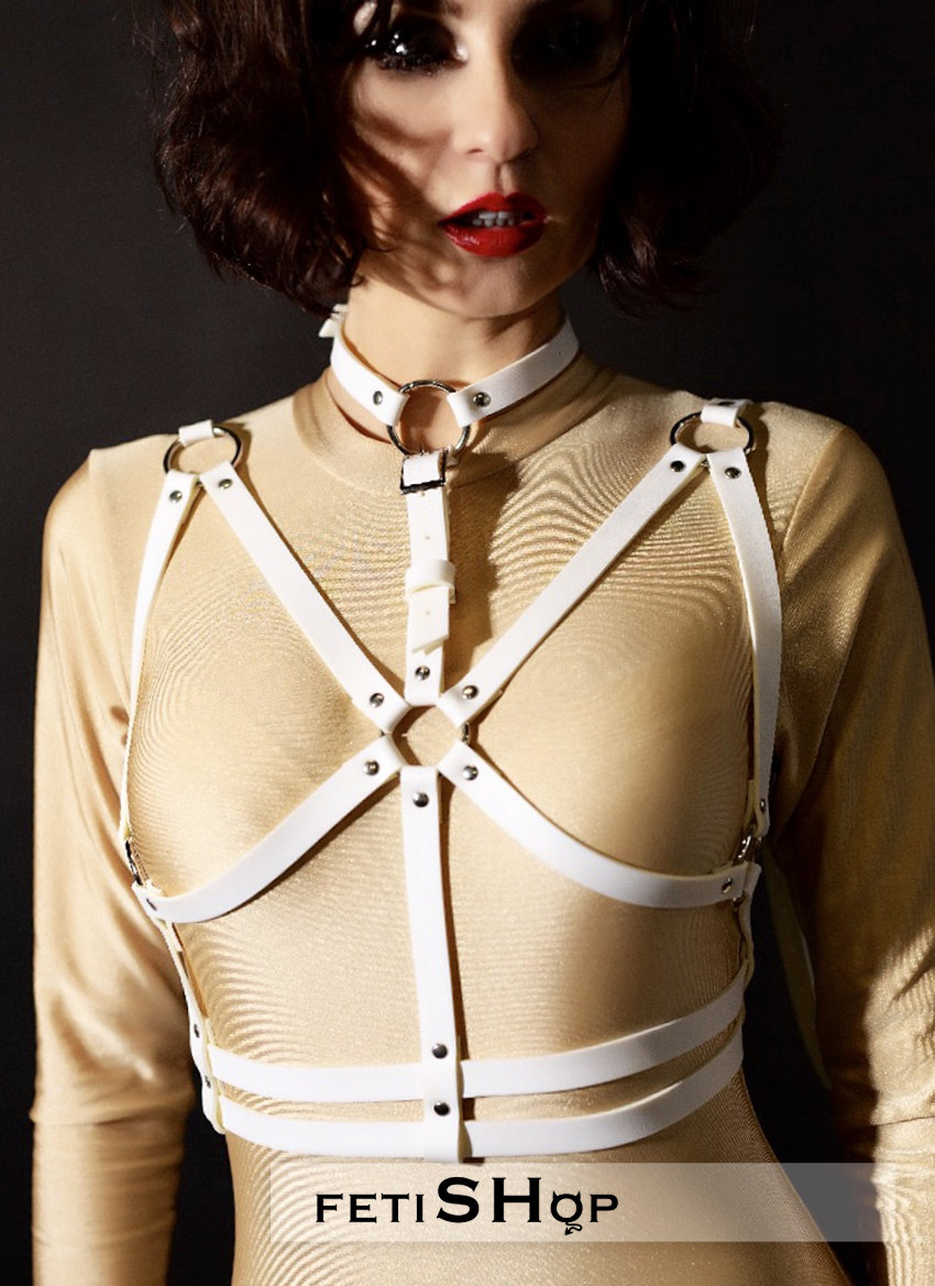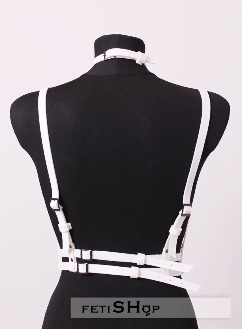Leather body harness "Justice" - Gorgeous white sword belt, BDSM chest body harness, bondage fetish accessory