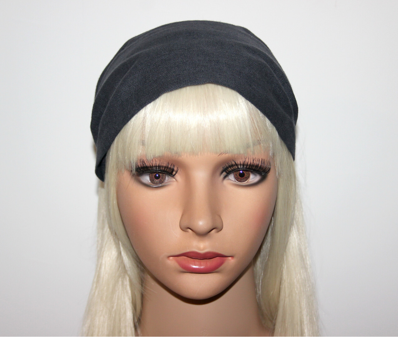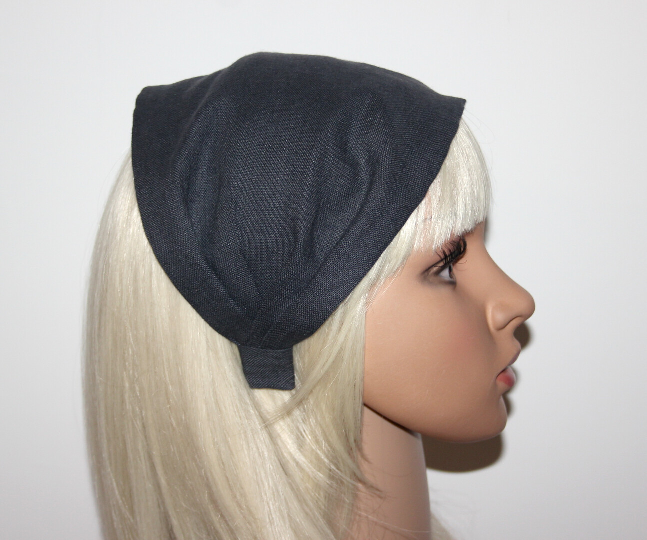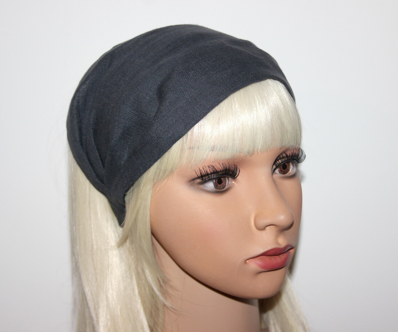 Charcoal Gray bandana headband 6"inch Linen hippie hairband / various widths available upon request