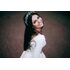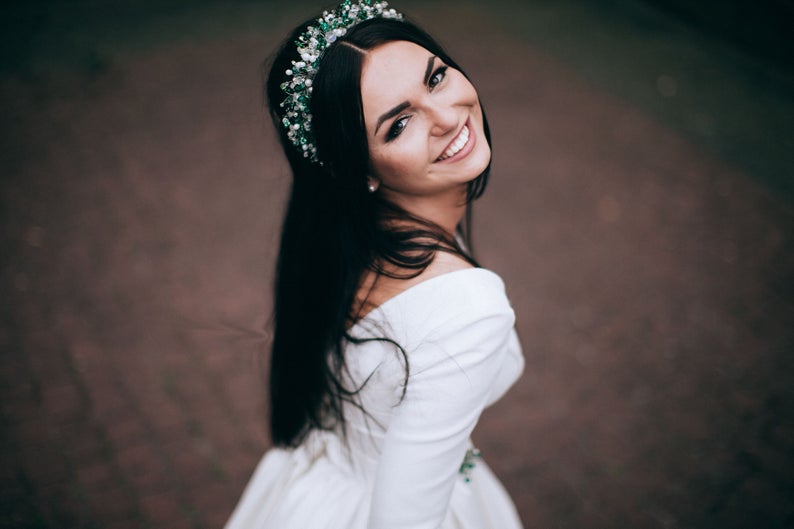 handmade hair accessory with white and green beads