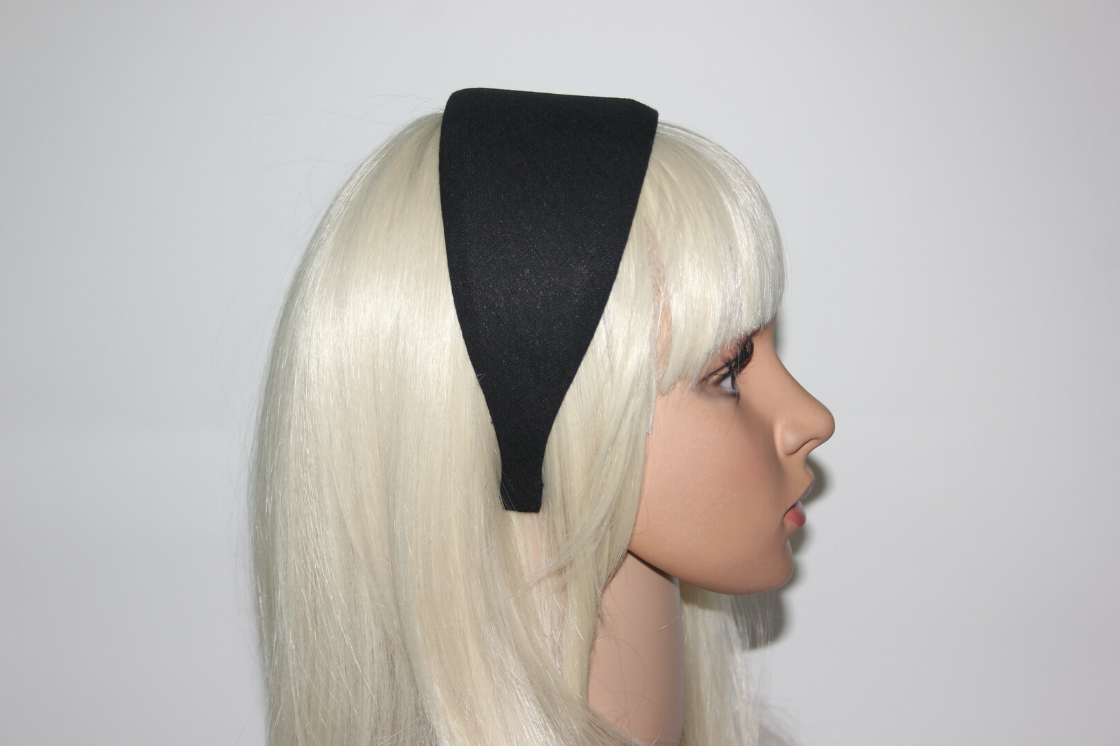 Black linen headband 3.15"inch Women handmade hairband, adjustable, plastic free/ various widths available upon request